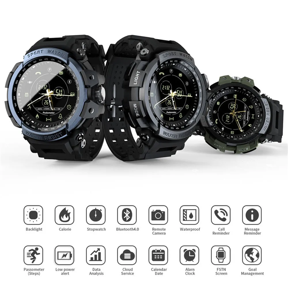 1. Профессиональная стандартная гидроизоляция Разработан в соответствии с международными стандартами IP68Водонепроницаемость до 50 метровМожет легко защитить от дождя и пыли2. Множество функций для ваших нуждЗапись данных о движенииШагомерКалорииПробег (км)Удаленная камераБудильникНапоминание о звонках и SMS3. Более профессиональный дизайн циферблата для вас Чехол изготовлен из сплава металла, который прочнее.4. Напоминание информации Когда у вас есть телефонный звонок или сообщение, он издает звук, чтобы напомнить вам5. Удаленная камера Когда телефон подключен к часам, просто нажмите кнопку на часах, чтобы завершить фотосессию6. Не нужно заряжать Используйте аккумулятор s CR2430, срок службы батареи 8 месяцев при нормальном использовании, срок службы батареи 12 месяцев в энергосберегающем режиме7. Будильник 3 будильника можно установить из приложения8.Bluetooth 4,0 совместим с Android и iPhone Подключите телефон для отображения активности или Используйте приложение Sports +9. Облачное хранилище данных 1) данные о движении могут храниться на часах в течение 15 дней2) загрузите на облачный сервер и сохраните его постоянно3) доступ к нему с телефона4) поделитесь своими данными упражнений в социальных сетях5) приложения и фоновые сервера поддерживают глобальную сеть6) вы можете поделиться своими спортивными данными и рейтингами с друзьями по всему миру