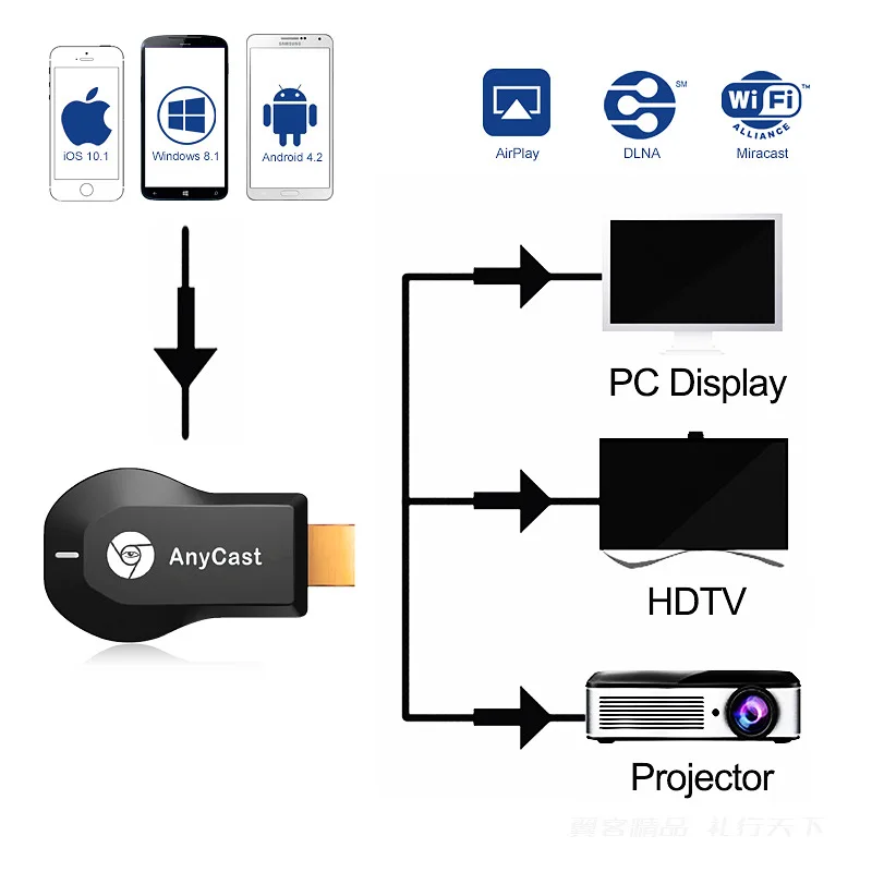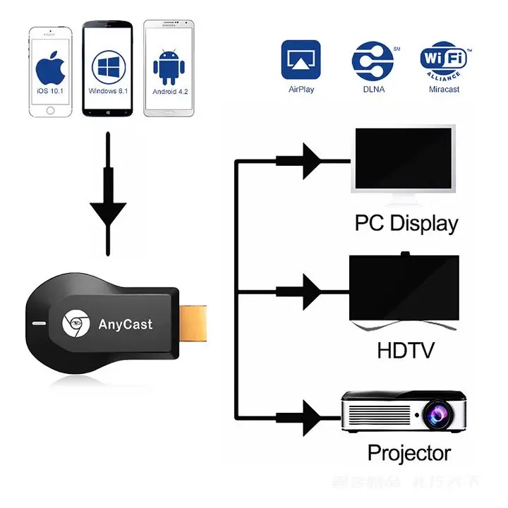 Способ работы: Первый шаг: вставьте сокровище в HDMI-совместимый интерфейс высокой четкости телевизора Второй шаг: беспроводной разъем должен подключить адаптер питания (стандарт 1A), а затем подключить питание Третий шаг: 1. Подключите продукт WiFi 2. Откройте URL 192.168.49.1 Нажмите первый значок, подключите Домашний Персональный wifi, выйти из интерфейса после успеха; 3. Apple phone / tablet Потяните ярлык, чтобы открыть зеркало для достижения того же экрана; Android phone для установки экрана Общий доступ к экрану или мультимедиа, зеркальное отображение экрана, проекционный экран, WLAN дисплей, беспроводной дисплей. Наслаждайтесь технологией беспроводного отображения! Особенности продукта: ① Он совместим с такими протоколами, как EZAir, DLNA, wi-fi-дисплей и Miracast, и может проектировать устройства только по беспроводной сети (мобильные телефоны и планшетные компьютеры) на такие устройства, как телевизоры и проекторы через Wi-Fi для достижения той же платформы на одном и том же экране. ② Поддержка 720p / 1080p HDMI-выход HD также позволяет избавиться от традиционной грязной обмотки, легко путешествовать ③ Расстояние беспроводной передачи 10 метров, в пределах 10 метров лучшее взаимодействие с клиентами, слушателями, показывают замечательную речь ④ Поддержка онлайн-игр и локального воспроизведения, видео развлечений по всей сети, Youku, Sohu, Tencent и другого воспроизведения видео, что позволяет воображать на большом экране массовые интернет-ресурсы. Коллеги также могут поддерживать один и тот же экран онлайн, позволяя вам путешествовать по Интернету Технические характеристики Процессор: AM8251 Операционная система: Linux 3.0.8 Соглашение с тем же экраном: Anycast, Ezcast, DLNA, Miracast, Airplay Поддержка системы: IOS, MAC, ANDROID, WINDOWS Поддержка содержимого: видео, аудио, фотографии, документы, онлайн-видео, Порт HDMI-Совместимость: 1 * Мужской HDMI-совместимый DC: 1 * Micro USB порт Система поддержки: телефоны Android, мобильные телефоны Apple Разъемы: HDMI-совместимый, USB Возможность декодирования: 1080P (Full-HD) Операционная система: Android Тип: высокое разрешение Список посылка 1 * Ключ ТВ палка 1 * USB WiFi кабель 1 * Руководство пользователя на английском языке