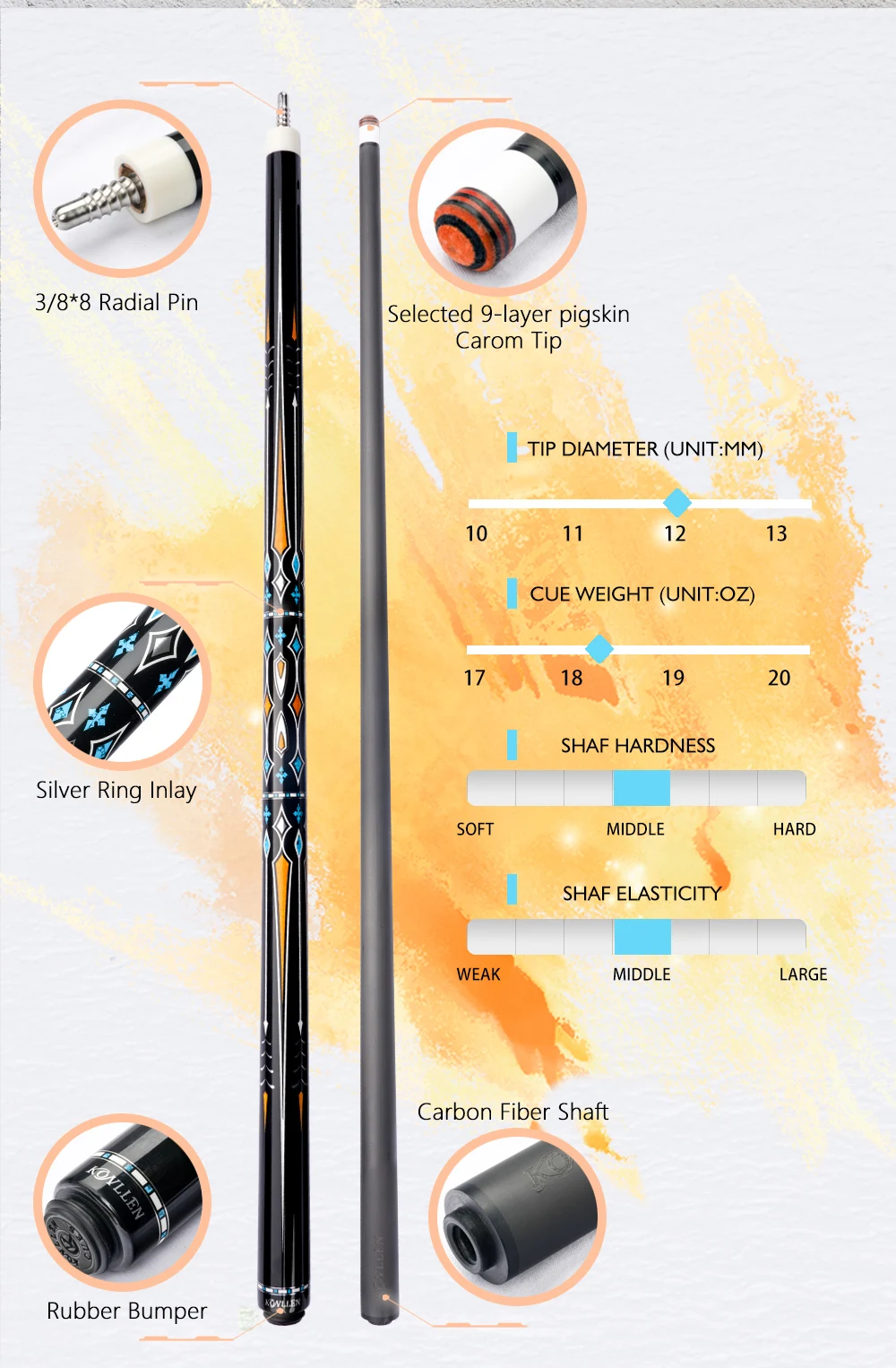 Новый KONLLEN 3 подушки Углеродные карбоновые сигналы валы из углеродного волокна 12 мм наконечник 142 см комплект радиальных контактов профессиональный корейский 3-подушечный кий