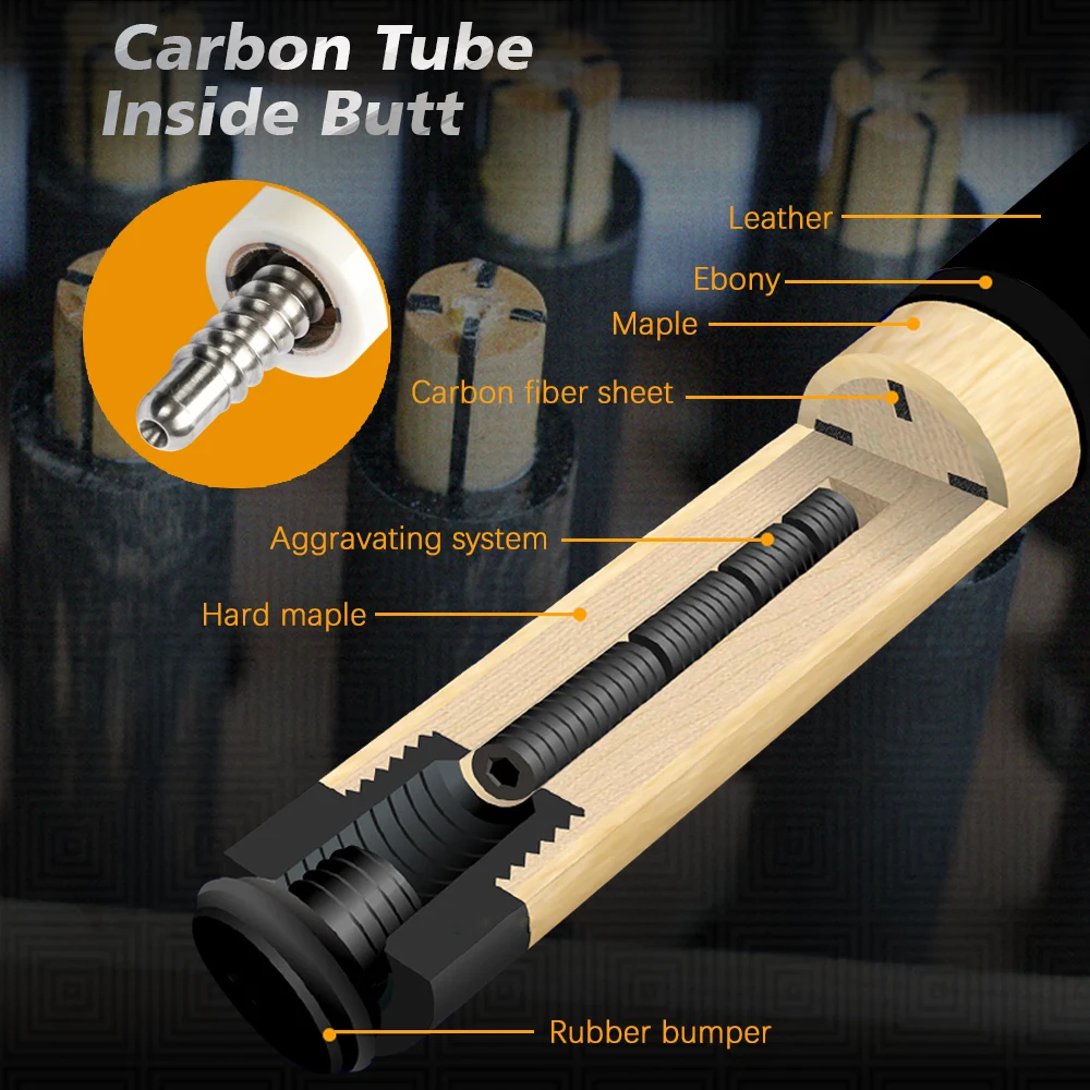 1. Стержень из углеродного волокна, более твердый, чем закаленное стекло, более мощный2. В основе черной технологии используется аэрокосмический чистый углеродный волокнистый композитный материал, внешний вид-углеродный черный, полая структура делает вал легче, но углеродное волокно может быть более мощным, чем твердое дерево cue3,3/8*8 радиальный контактный шарнир, более плотное соединение4. Новые цвета, ведущие моду