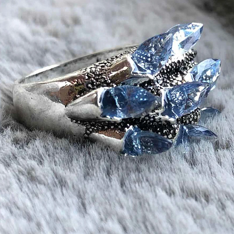 Популярные синий обручальное кольцо с цветком для Женская мода попу...