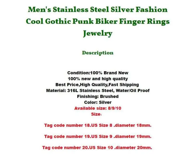 Punkboy Популярные Для мужчин, кольцо, кольцо из нержавеющей стали ...
