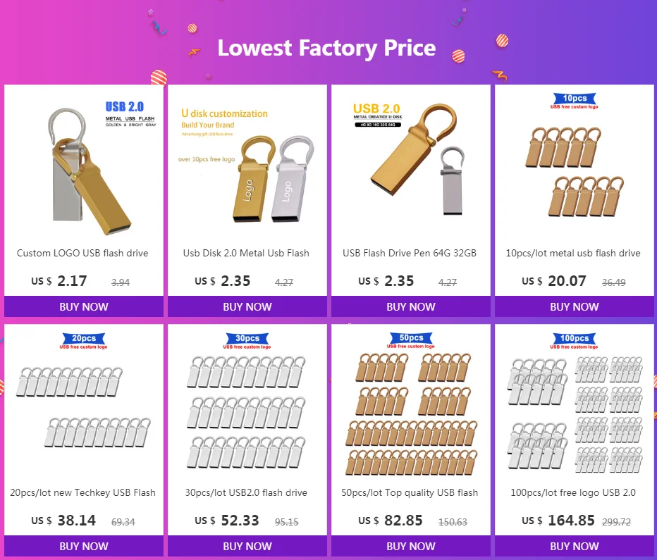 Добро пожаловать в наш магазин Мы являемся фабрикой usb, производим и настраиваем все виды высококачественных usb флеш-накопителей Каждый usb проходит тестирование реальной емкости перед отправкой, убедитесь, что каждый из них имеет хорошую квалификацию, когда клиент получилЕсли вам нужно большее количество или другой пользовательский стиль. Пожалуйста, свяжитесь с нами. Мы стараемся предоставить нашим клиентам лучшие цены, стиль и услуги.С наилучшими пожеланиями. Для логотипа: 1.Бесплатный Логотип2. После размещения заказа, пожалуйста, отправьте изображение логотипа Aliexpress сообщение, спасибо