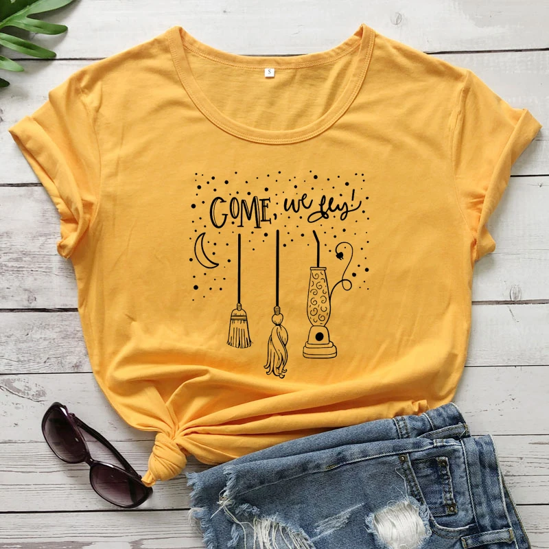 Футболка ведьма метла из 100% хлопка, забавная Женская футболка для...