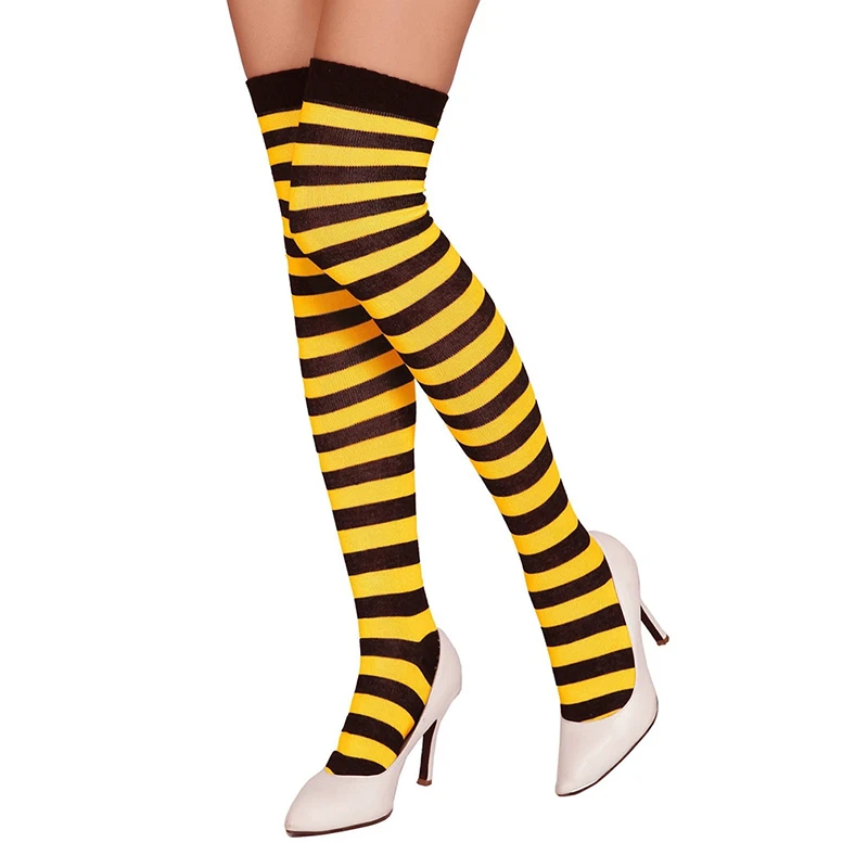 Женские носки, бедра выше колен, Длинные полосатые принты, Высокие ...