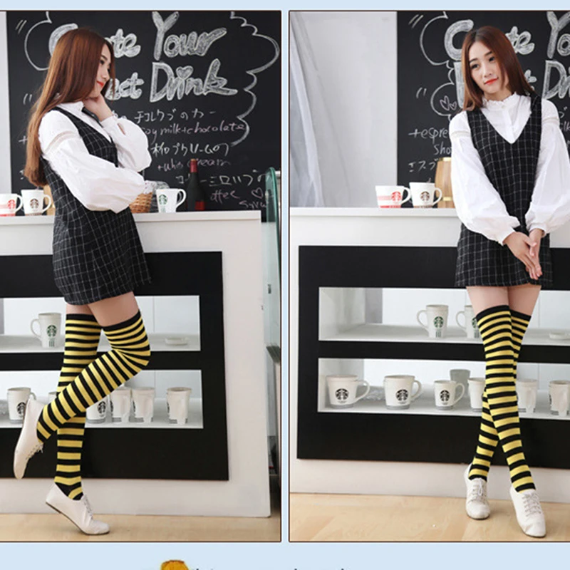 Сексуальные женские гольфы в полоску, длинные гольфы до бедра, милы...