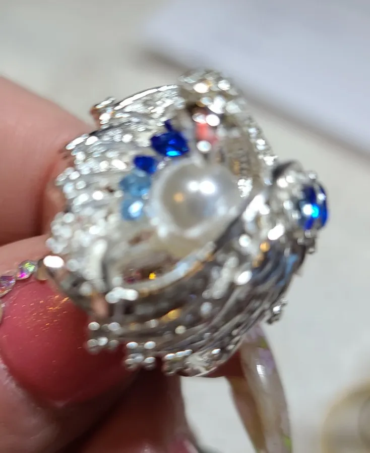 Женское кольцо из меди с синим жемчугом и бабочкой, размеры 5-11