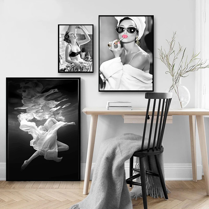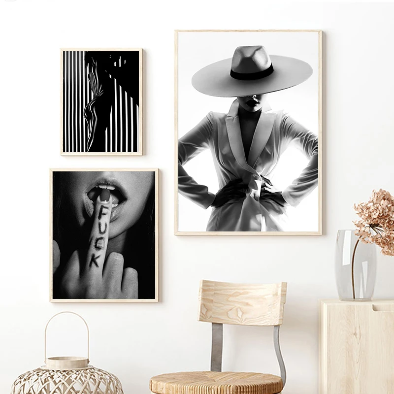 Черно-белая сексуальная холщовая живопись для девочек, модный посте...