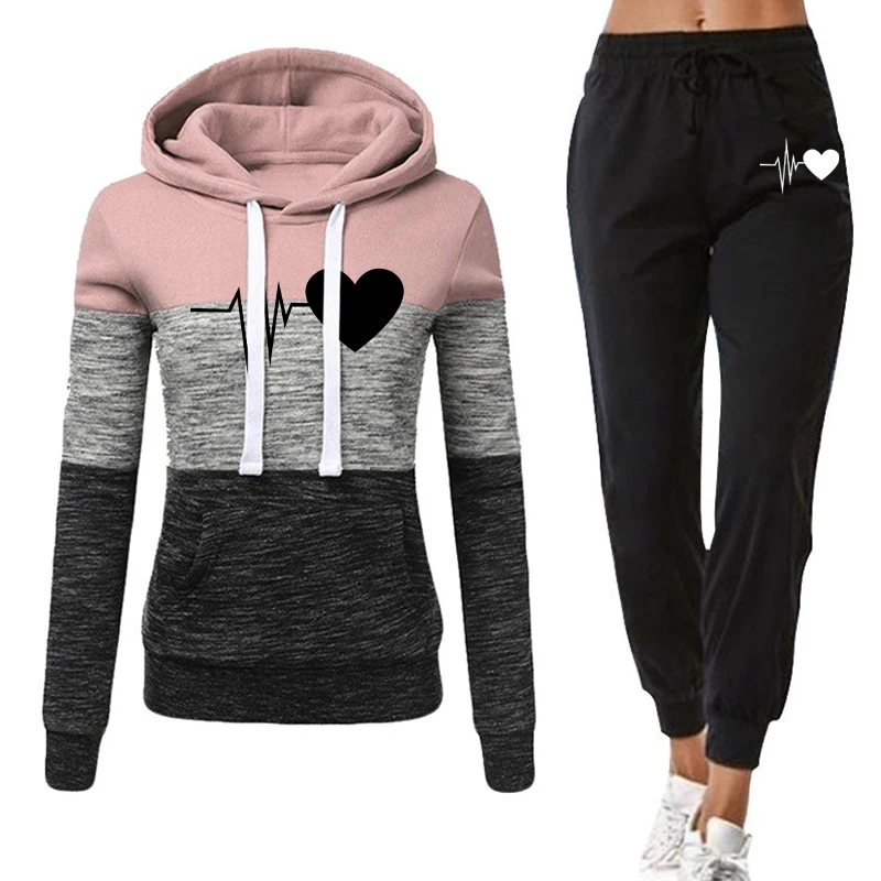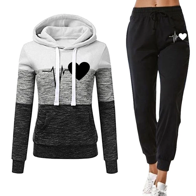 Женский спортивный костюм из 2 предметов, зимняя толстовка с капюшоном и штаны с принтом, спортивная одежда, женский спортивный костюм, комплект с капюшоном, женская зимняя одежда