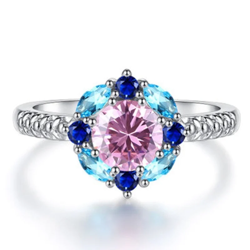 Женское кольцо с цветком красоты, розовое, синее и белое кольцо с к...