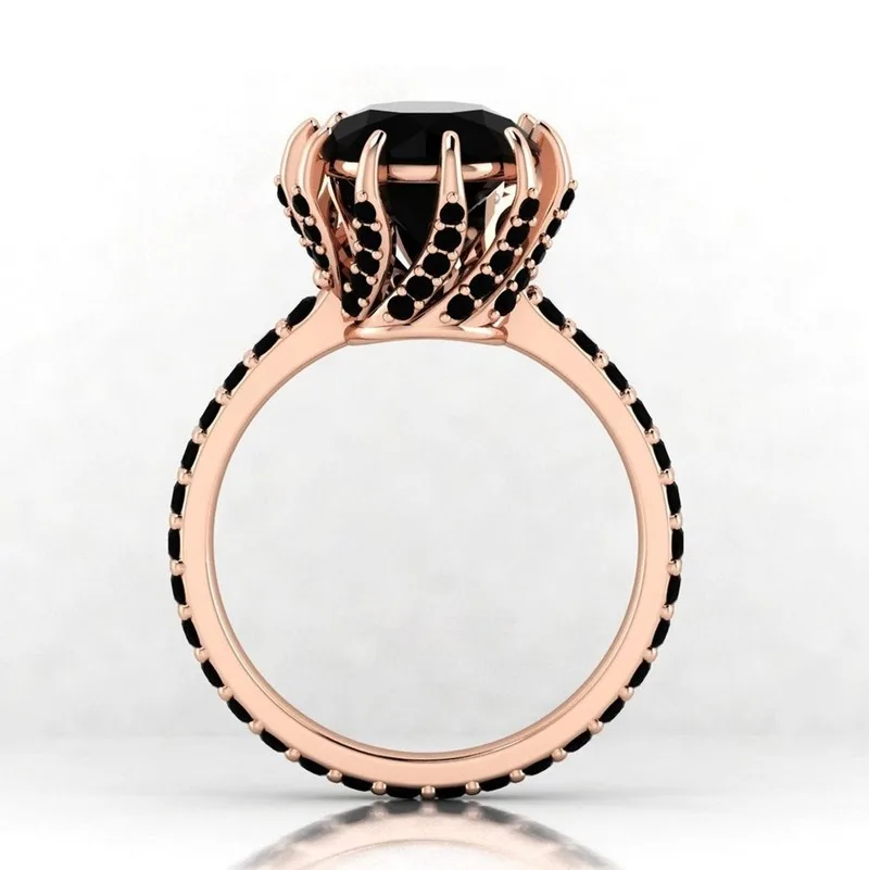 Кольцо обручальное с черными кристаллами, крупное обручальное кольцо с черным драгоценным камнем, хит продаж, кольца для женщин