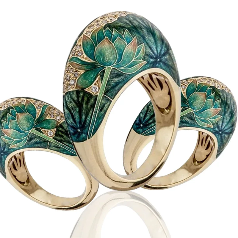 Кольцо в стиле ретро с изображением лилии, искусственное кольцо с и...