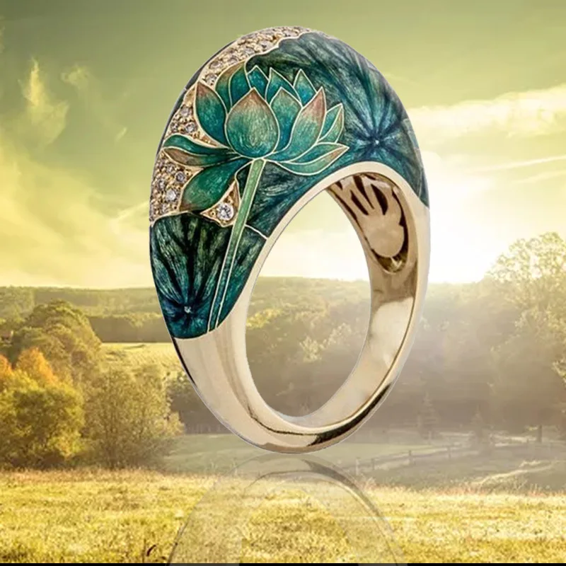 Женское двухцветное кольцо Milangirl с эмалью цветочного лотоса, романтическое свадебное обручальное кольцо с цирконием