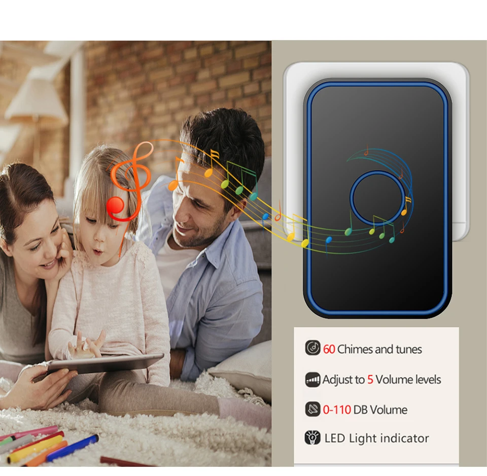 CACAZI умный беспроводной дверной звонок 60 колокольчиков водонепроницаемый Домашний Беспроводной дверной звонок для вспышки US EU UK штекер 3 кнопки 1 приемник