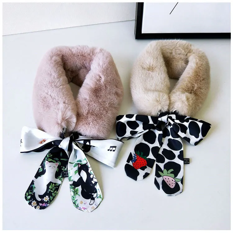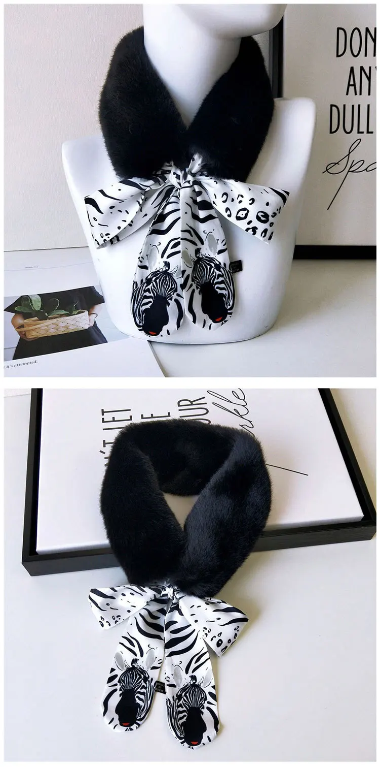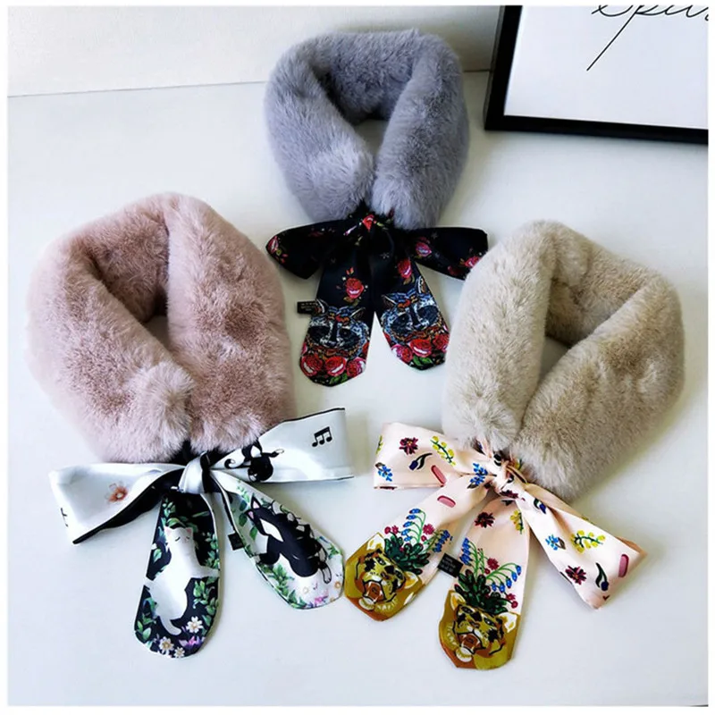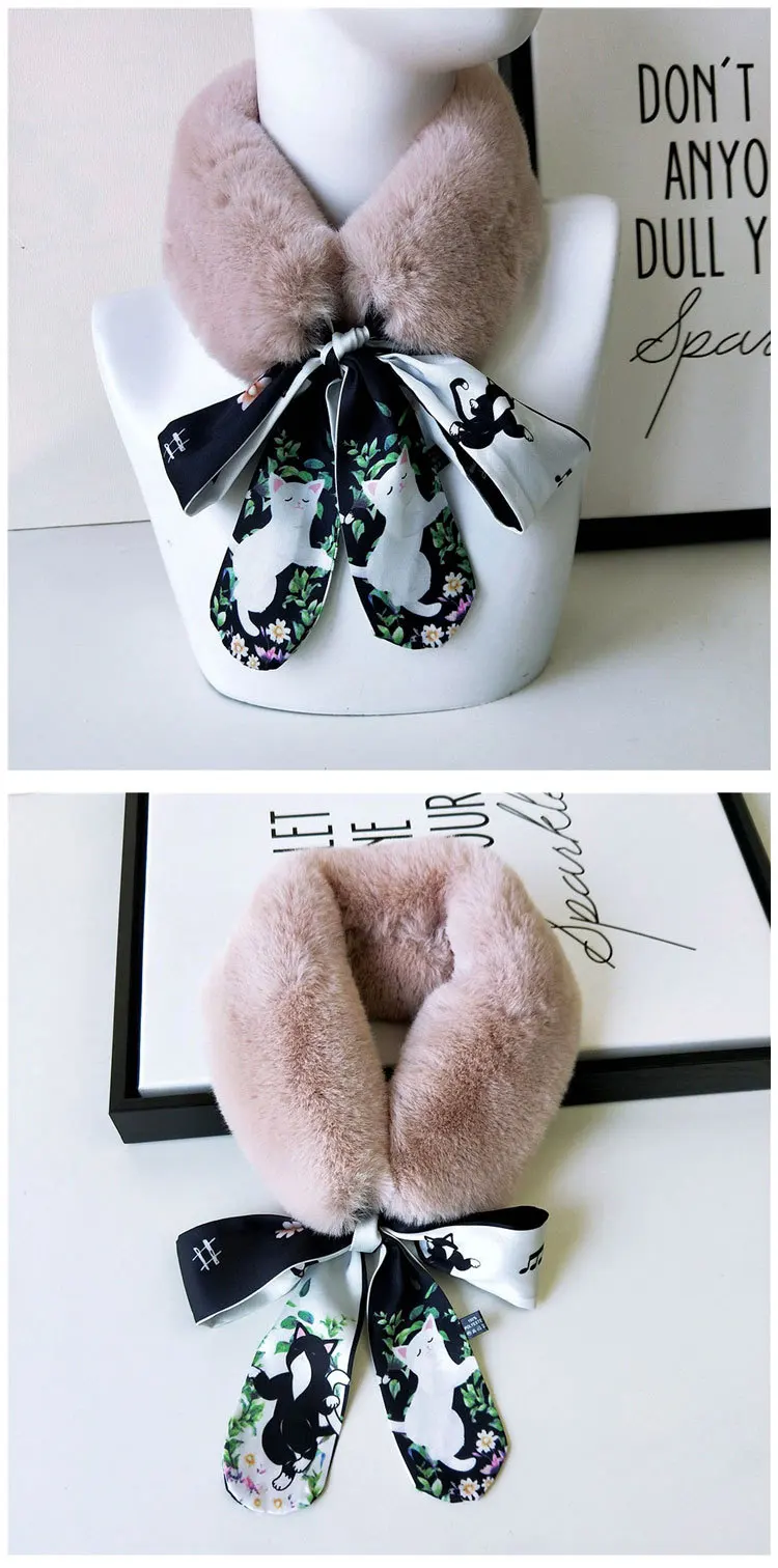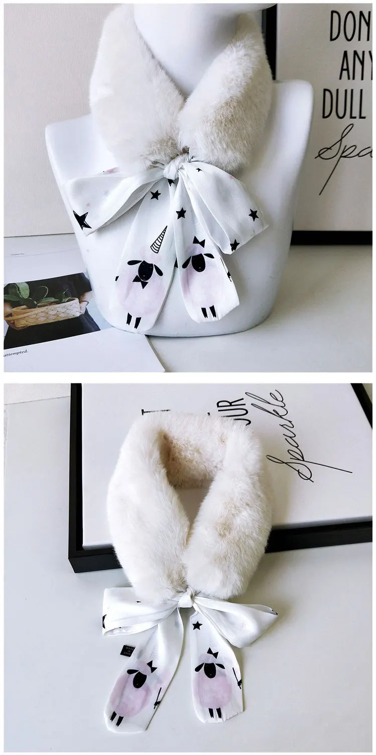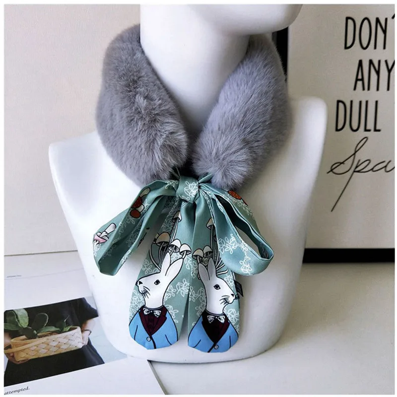 Новый Модный мягкий женский шарф с воротником из искусственного кроличьего меха, плюшевый воротник, зимний теплый шарф, Женская облегающая шелковая шаль
