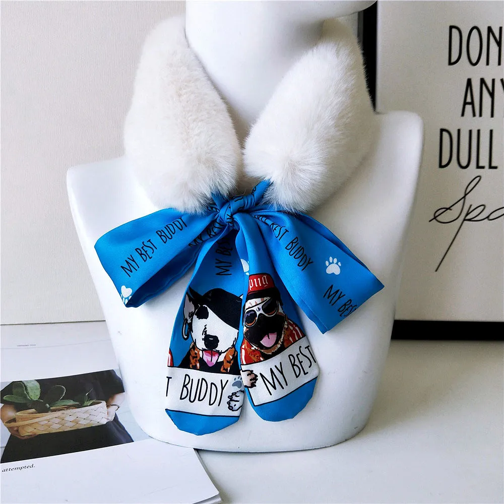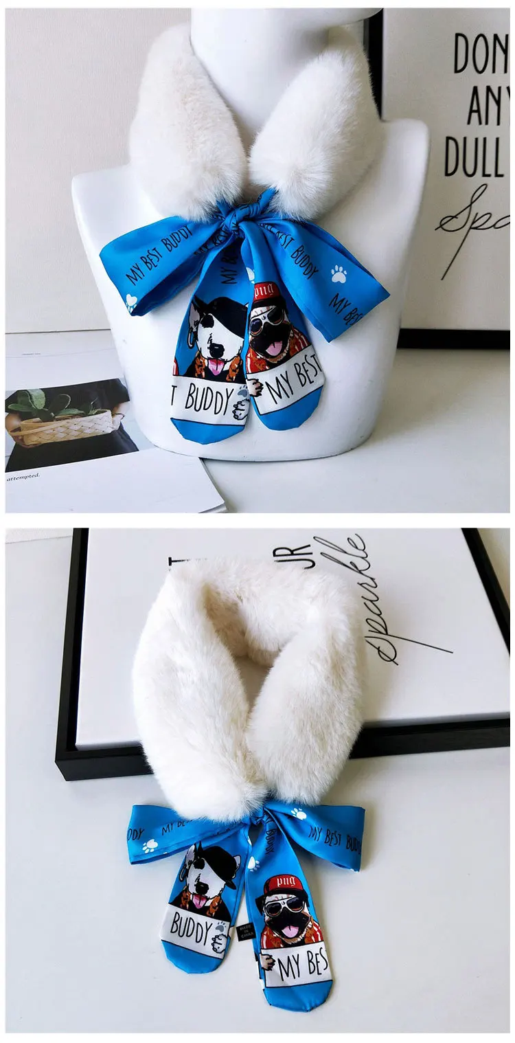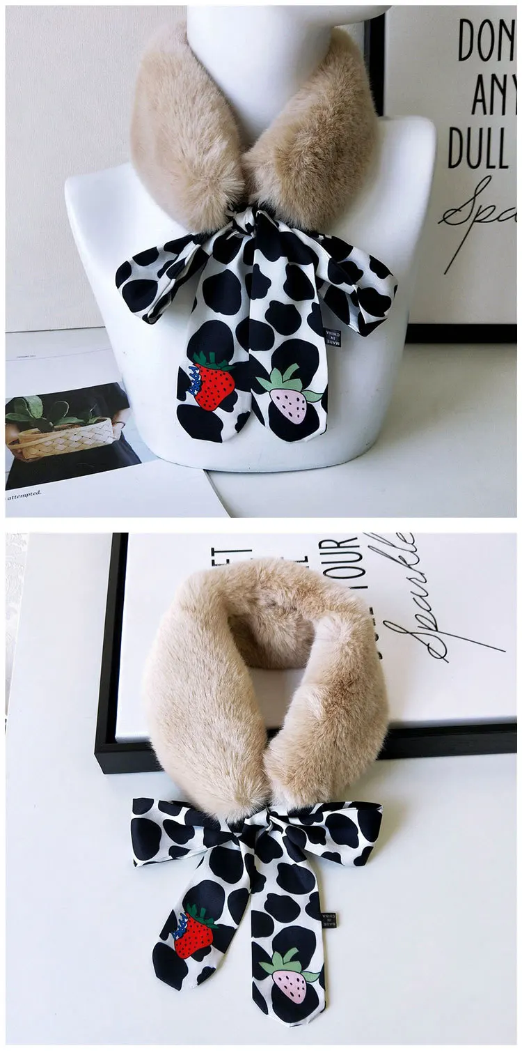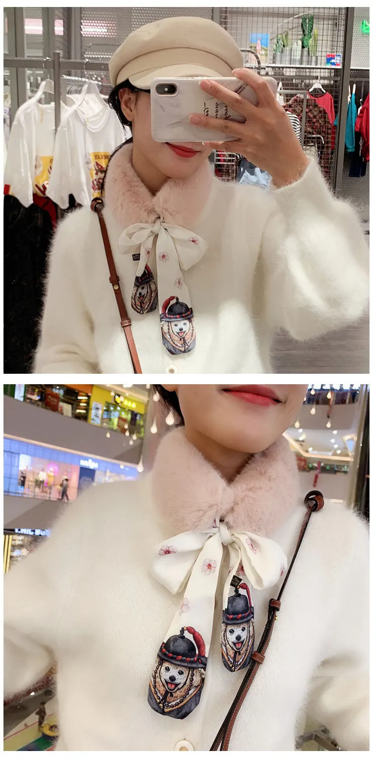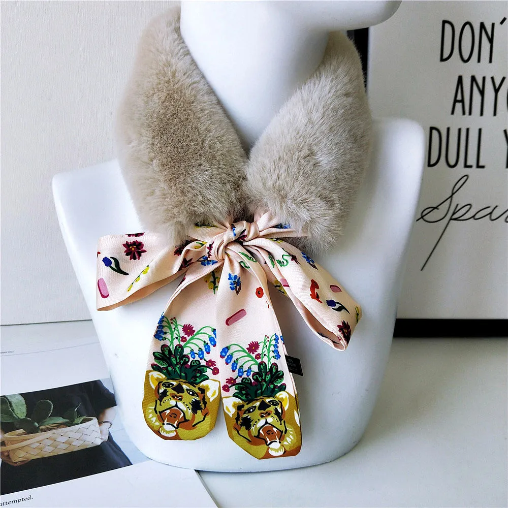 Новый Модный мягкий женский шарф с воротником из искусственного кроличьего меха, плюшевый воротник, зимний теплый шарф, Женская облегающая шелковая шаль