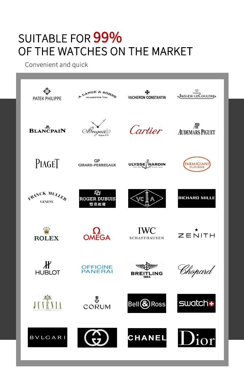 3. Подходит для большинства часов: подходит для большинства часов. Подушка регулируется путем удаления наполнителя внутри, вмещает различные размеры часов.