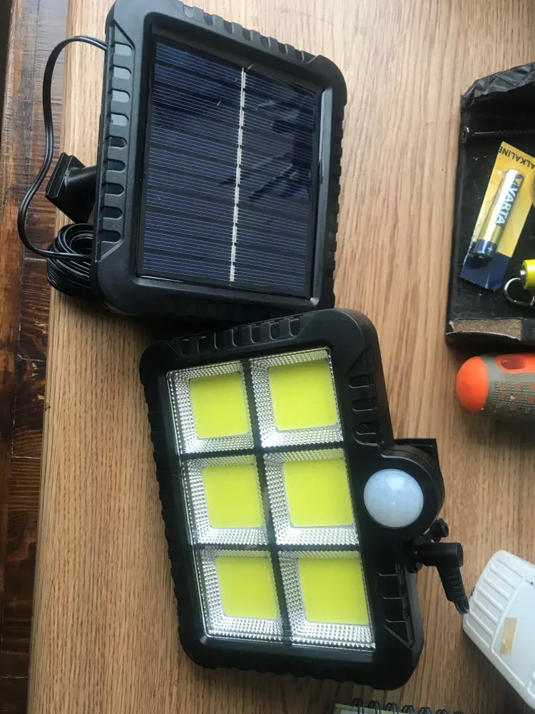 быстрая доставка. товар полностью соответствует. работает замечательно. датчик движения стабильно отрабатывает в охвате 120-130 градусов. батарейки в солнечном элементе хватает на 40-50 (когда без подзарядки) минут. покупкой доволен. Рекомендую.