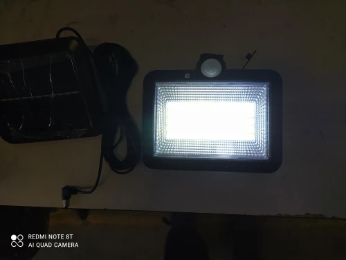 при достаточном освещении идёт зарядка, как только освещения недостаточно, прожектор переходит в режим ожидания и включается при обнаружении движения. светит ярко на входе перед дверью на улице освещения достаточно! рекомендую.