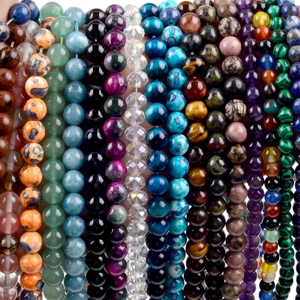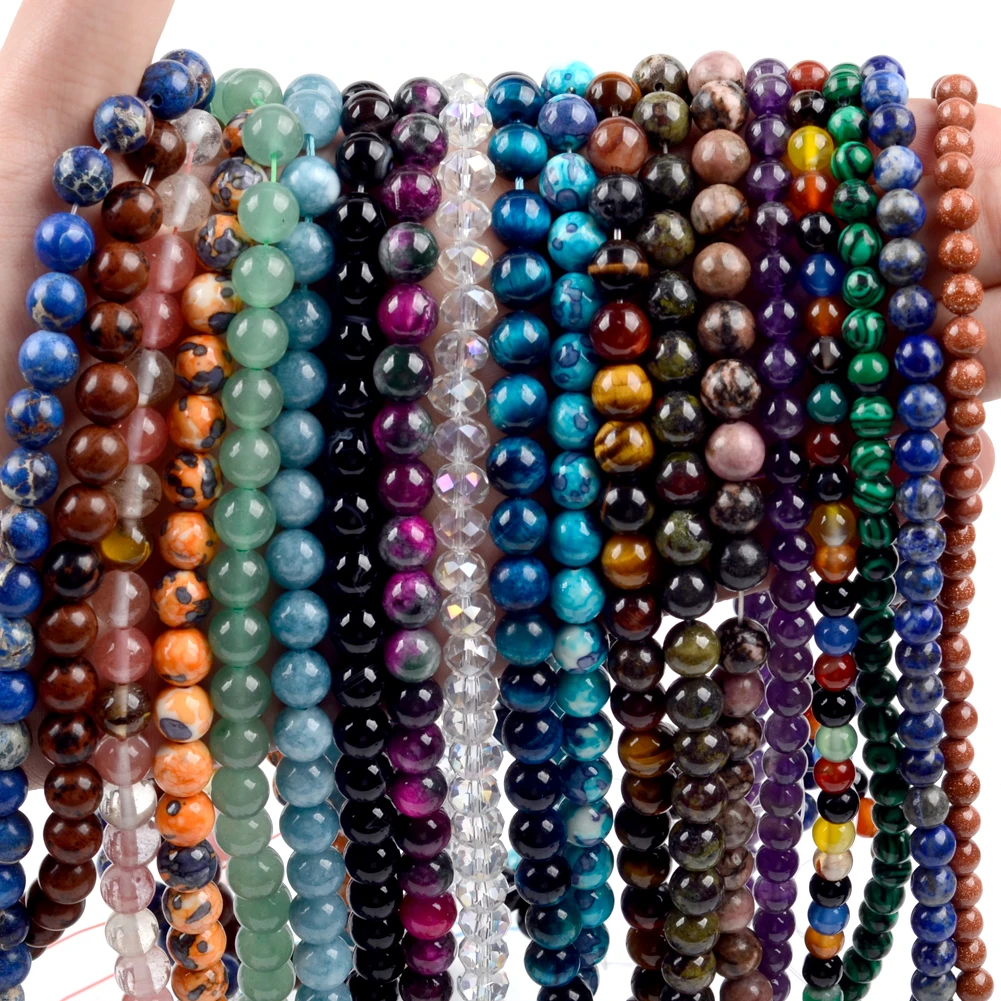 Браслет из натуральных драгоценных камней, бирюзы, тигровый глаз, Амазонит, Аметист, круглые бусины для самостоятельного изготовления ювелирных изделий, 4681012 мм, 15''