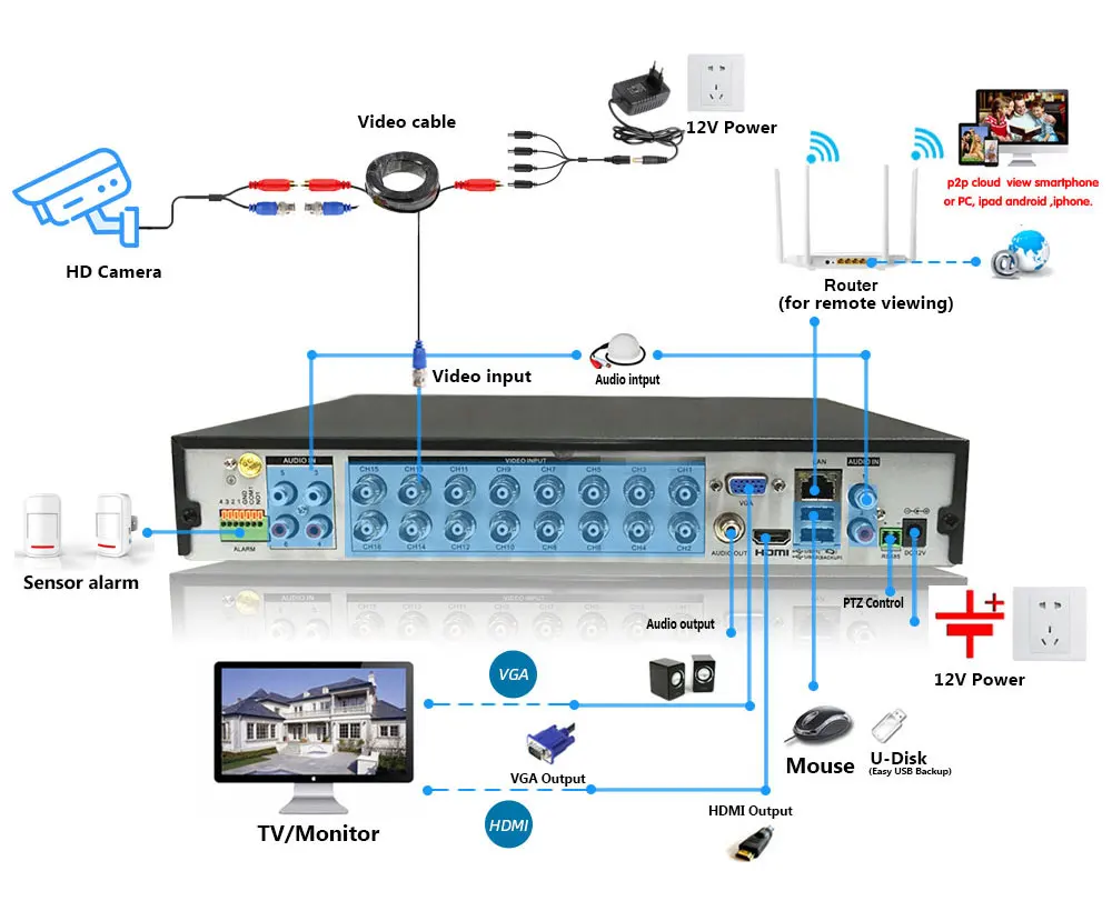 Система безопасности cctv подключена и работает, легко настроить,