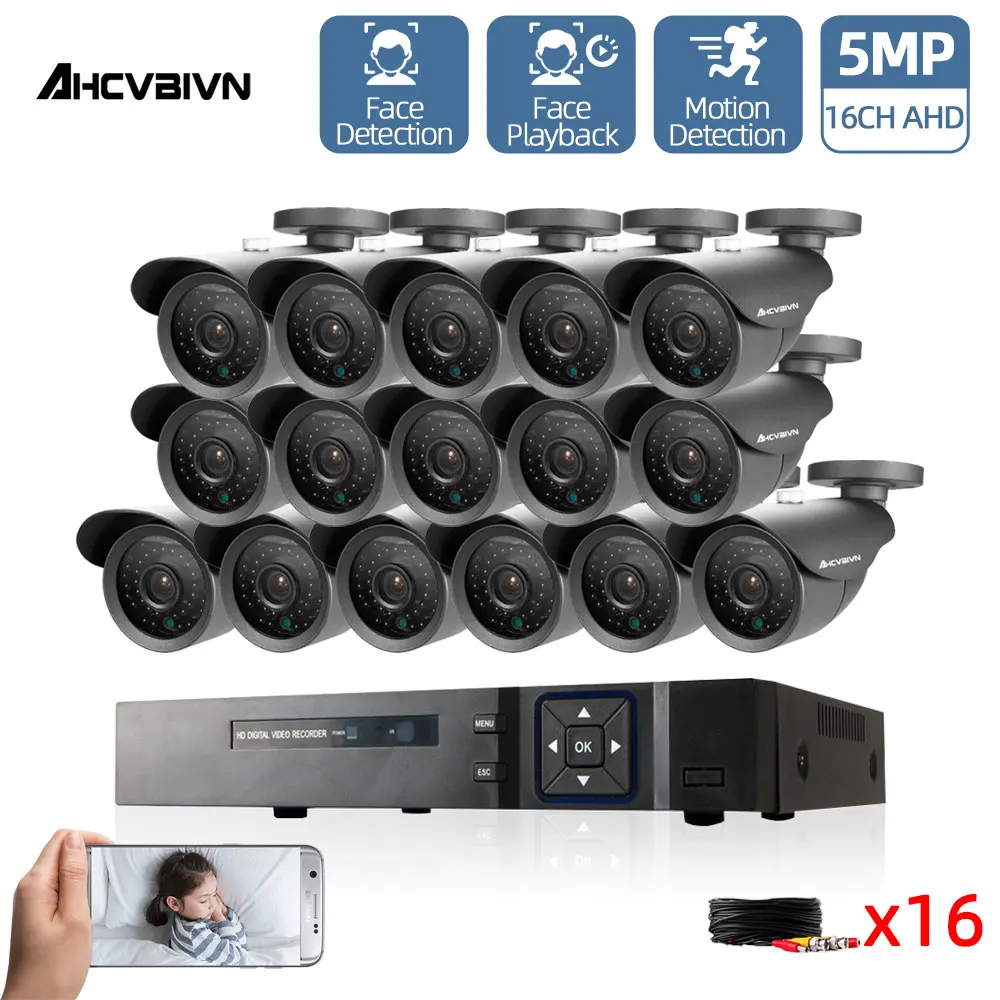 Система видеонаблюдения, 16 каналов, HDMI, 5 МП, DVR, 16x1000TVL IP66