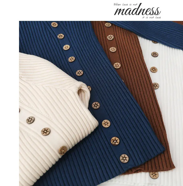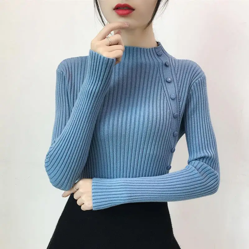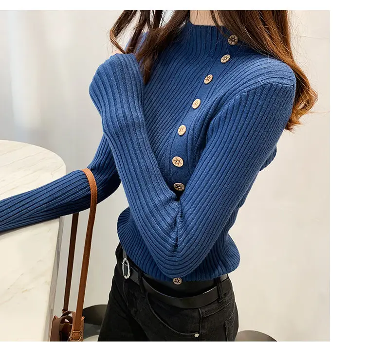 Свитер Женский Повседневный утепленный, пуловер с длинным рукавом, на пуговицах, с воротником до локтя, мягкий облегающий вязаный джемпер, Осень-зима