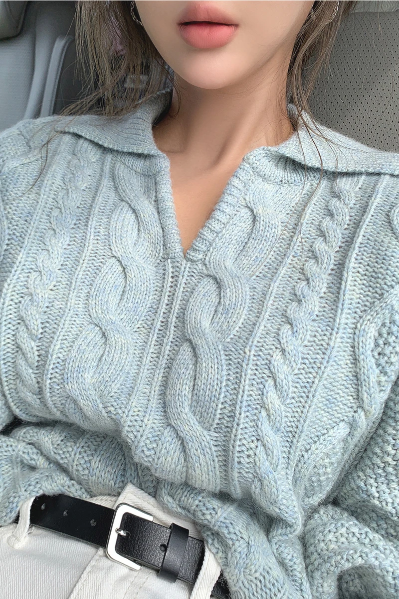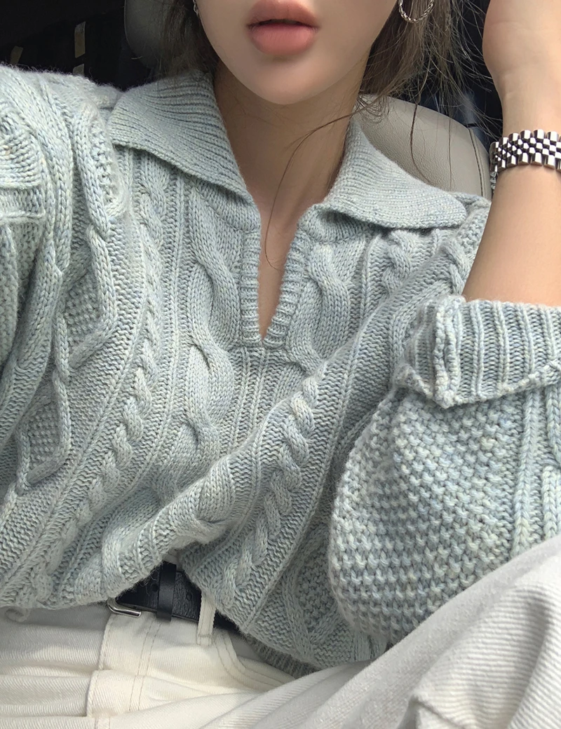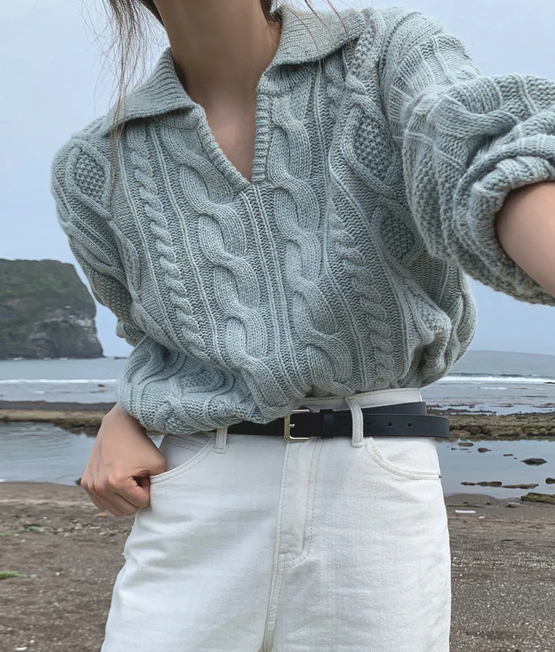 Женский трикотажный свитер с отложным воротником, в стиле ретро