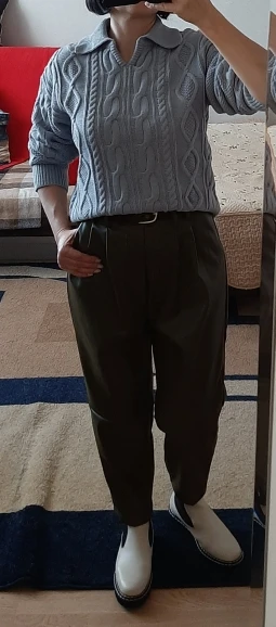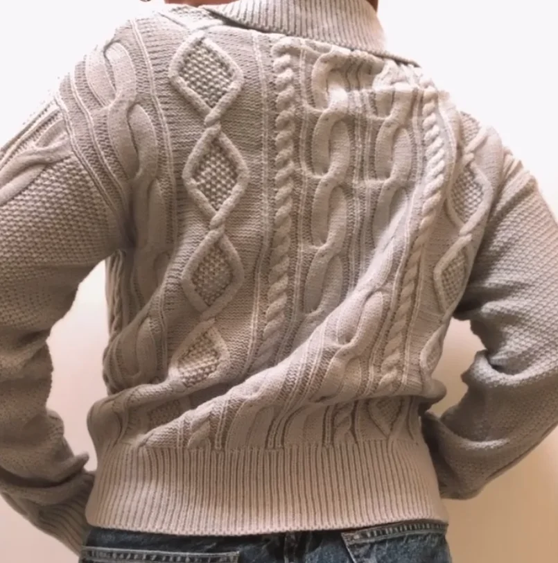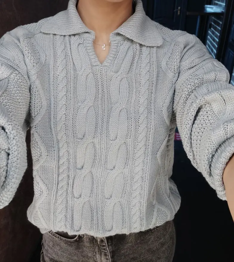 Отличный свитер. Сделан качественно. Мягкий, по ощущениям хлопок и акрил. Хорошо, что длинные рукава ( часто в китайских вещах рукава коротковаты). Подошло на русский 46-й размер, но для оверсайз подойдет для размера 42-44