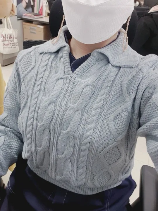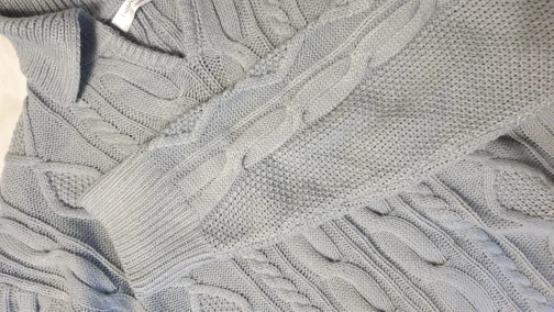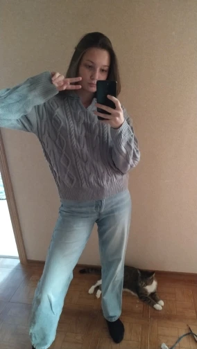 Милая кофта, на размер ог-96, от-80, об-98 подошла. Но, я не внимательно посмотрела, кофта короткая на рост 170. В принципе, это не минус, с джинсами с высокой посадкой хорошо смотрятся. Цвет-хамелеон серо-голубой, в зависимости от освещения. У меня широкие плечи, и кофта делает их ещё больше, имейте это ввиду