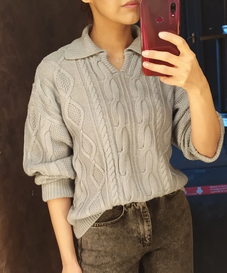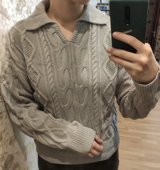 Свитер полностью соответствует фото, цвет сероватый, на ощупь ткань мягкая и довольно приятная, но это чистая синтетика, заявленного cotton в составе, на мой взгляд, вообще нет. На размер xs-s и рост 167 подошёл отлично, рукава длинные (обычно у меня с этим проблемы). В Москву свитер приехал быстро с распродажи 11.11, где-то за 2 недели, полную цену (1500) я бы платить за него стала, брала за 1000 с купонами