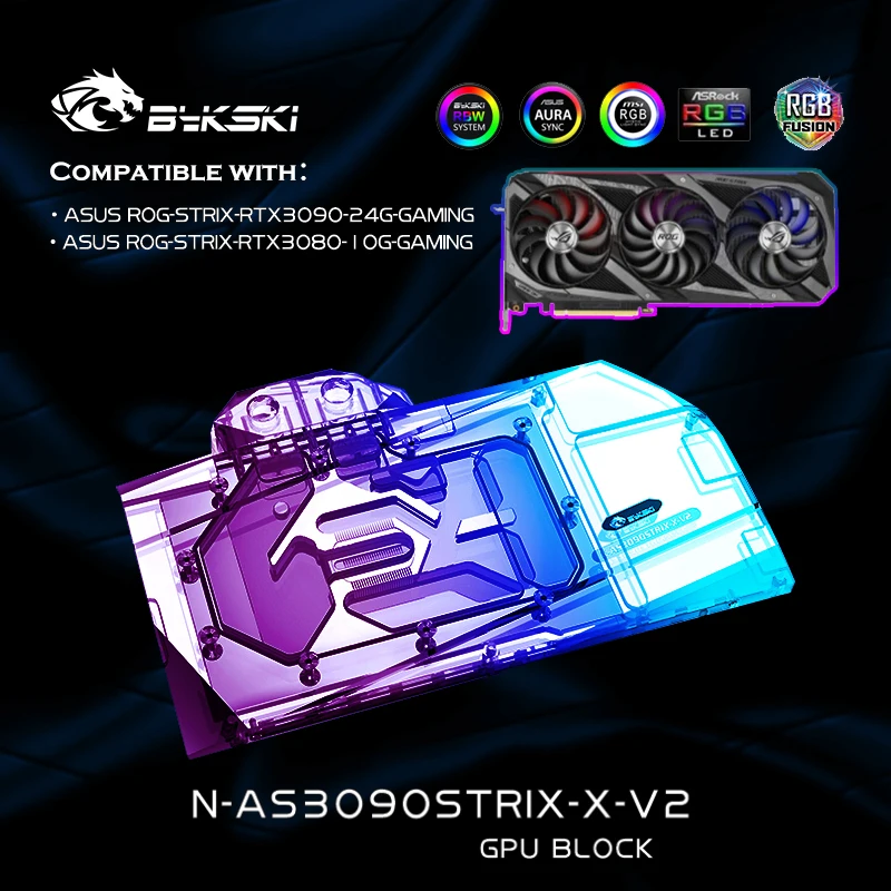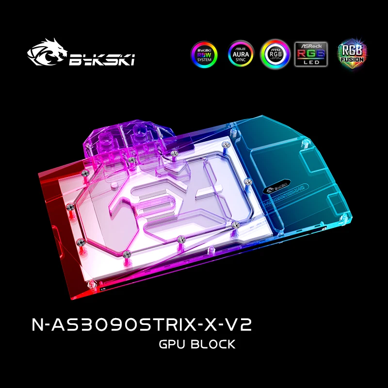 Bykski N-AS3090STRIX-X-V2, водоблок с полным покрытием GPU для видеокарты ASUS RTX3080 3090 STRIX, блок VGA, кулер для графического процессора, 12 В RGB5 В ARGB