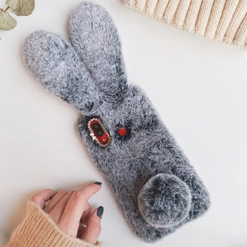 6,3 "для Xiaomi Redmi Note 7 Чехол плюшевый кролик теплый мех волос...