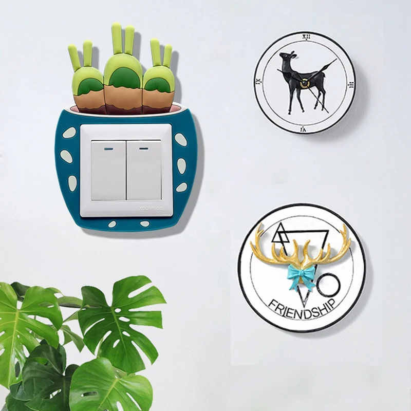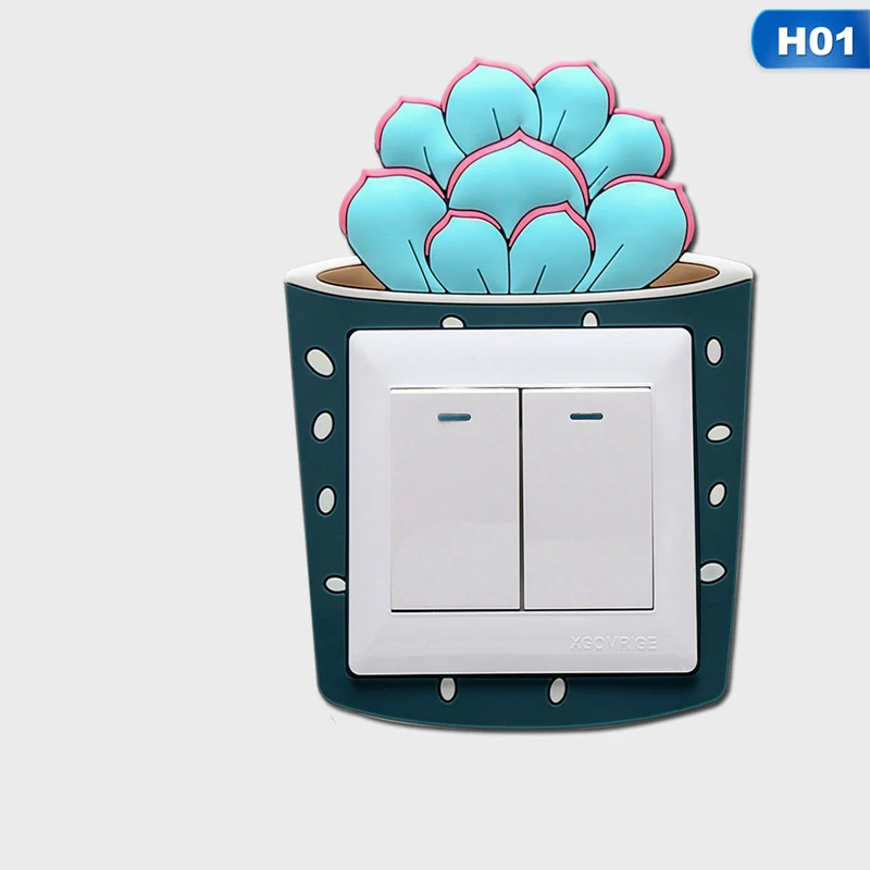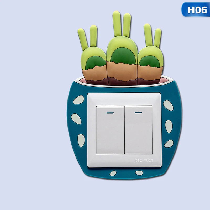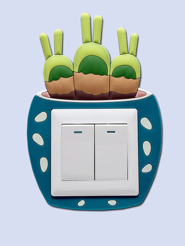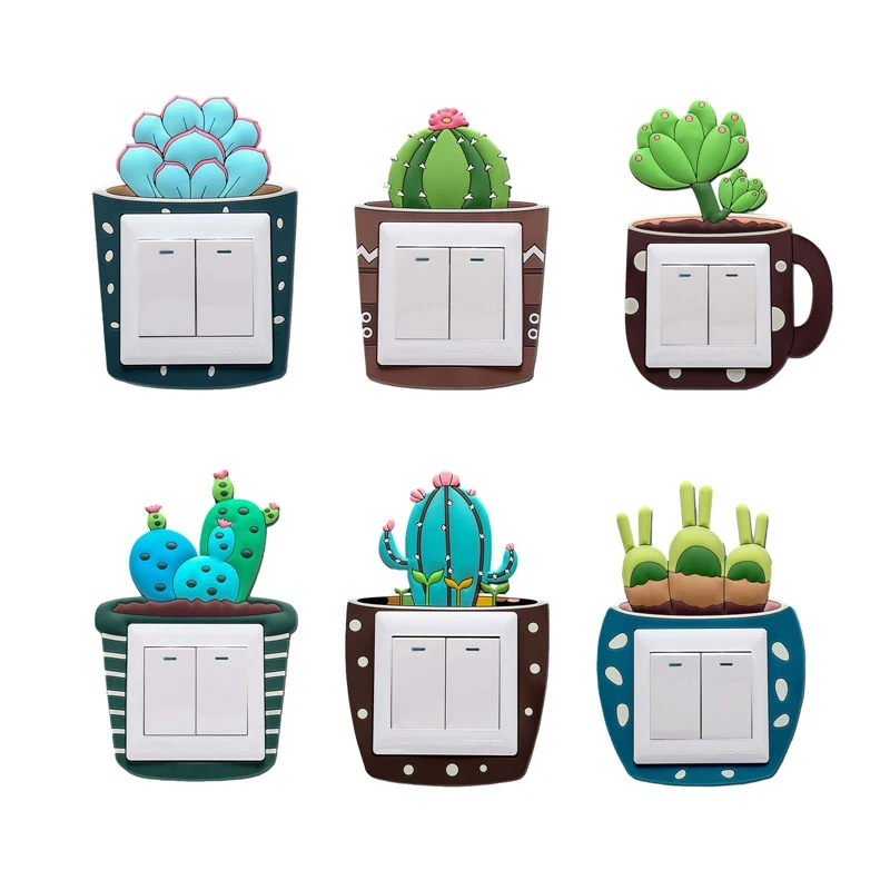 Милый мультяшный 3D кактус флуоресцентные настенные силиконовые наклейки на переключатель Детский световой переключатель светильник на выход украшение дома