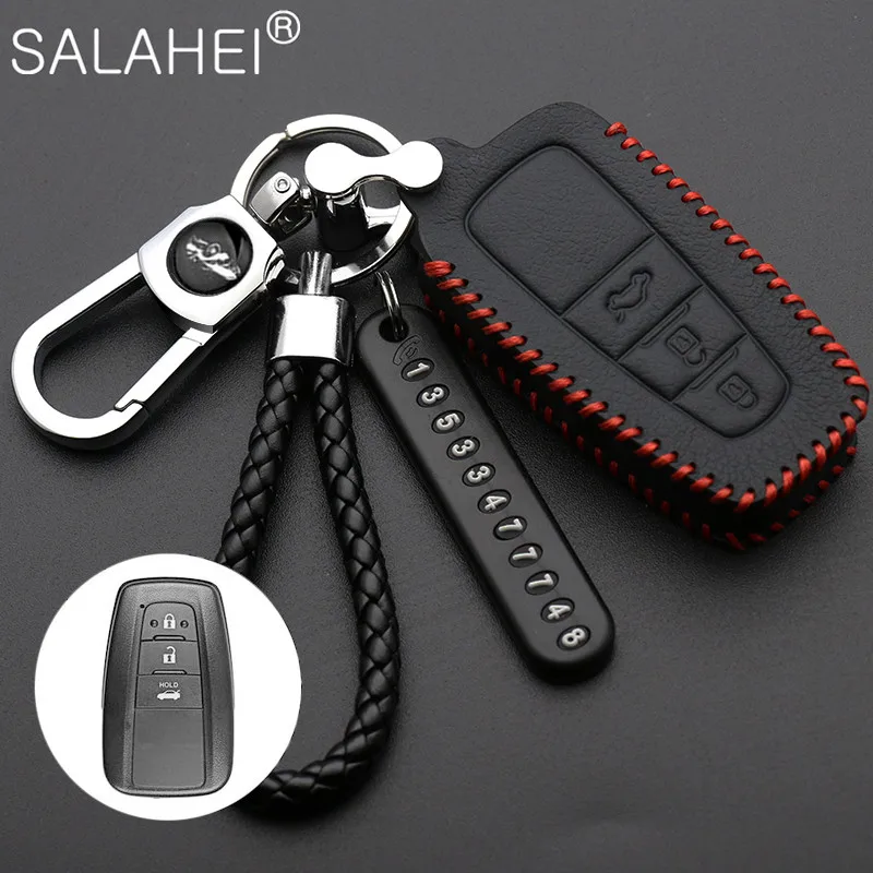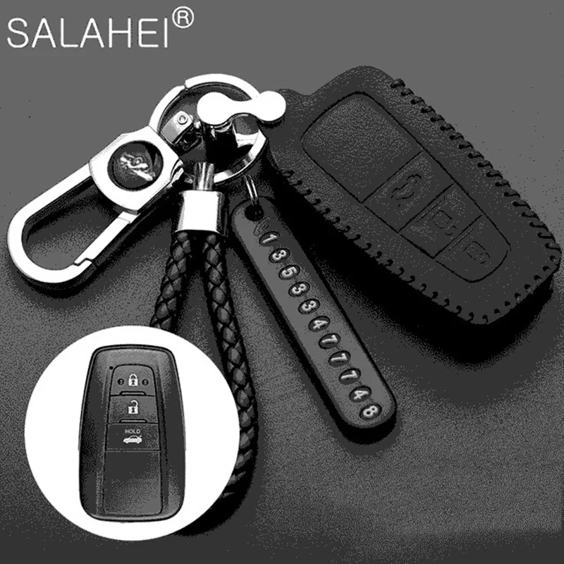 Кожаный чехол для ключа дистанционного управления автомобилем для Toyota Camry CHR Prius Corolla RAV4 Prado 2017 2018 Remote 3 кнопки без ключа