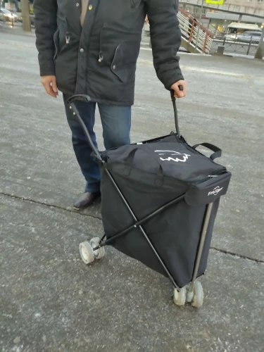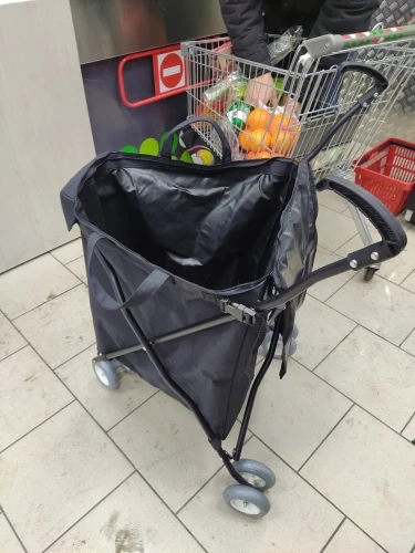 Тележка супер) Лёгкая, вместительная, крепкая! Быстро и просто раскладывается и складывается. Рама крепкая, колеса тихие. При полной загрузке едет мягко. Сумка сшита из очень плотной ткани, швы ровные, ручки пришиты надёжно, без проблем поднимали на крыльцо по лестнице полную тележку вместе с рамой. Продавец общительный, на все вопросы сразу отвечает. Доставка в срок. Спасибо) Покупкой очень довольна, теперь ничего из ближайшего магазина в руках не ношу, только в тележке! Очень удобно! Рекомендую к приобретению !!)