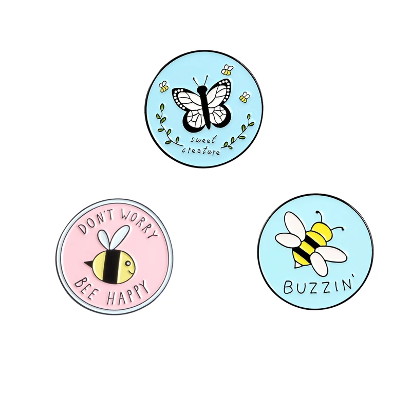 Брошь на лацкан, с пчелами, розовая, синяя, эмалированная, мешочек для брошек