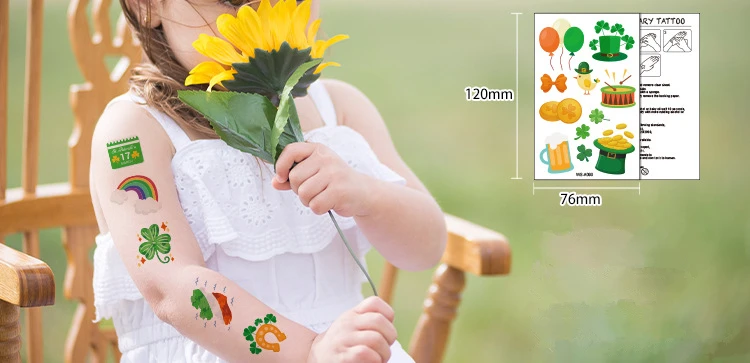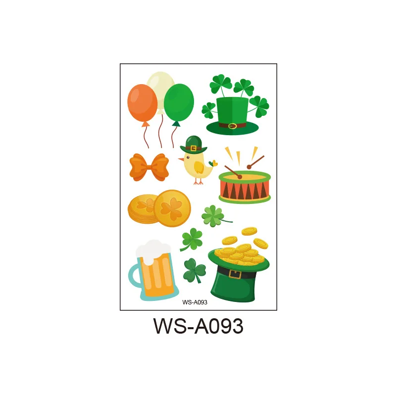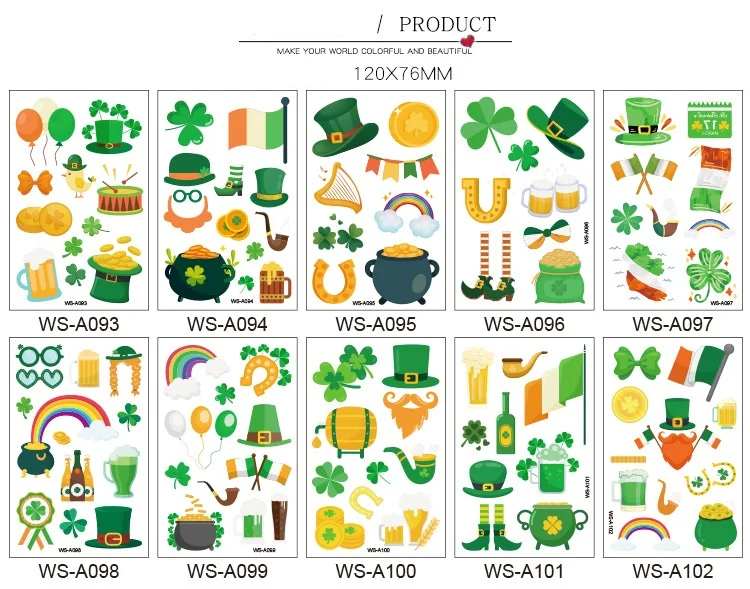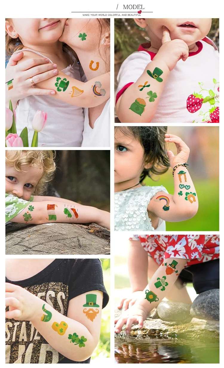 Одноразовые татуировки на День Св. Патрика, 10 видов, мультяшная шапка, клевер зеленый трилистник, водостойкие наклейки для тела, Временный Макияж лица