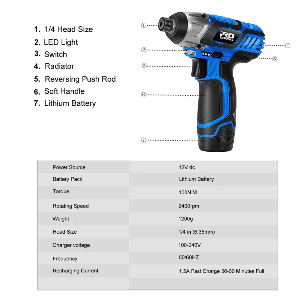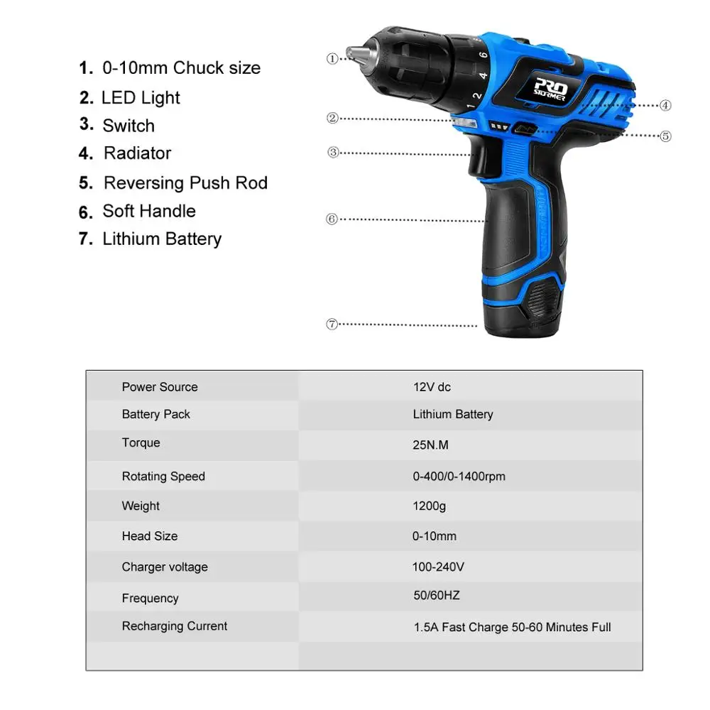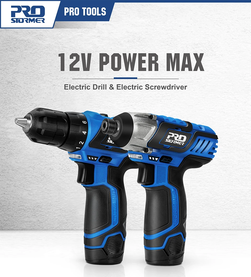 12V Electric Screwdriver Cordless Drill 100NM Torque Electric Hand Drill Mini Wireless Driver Power Tools Set By PROSTORMER