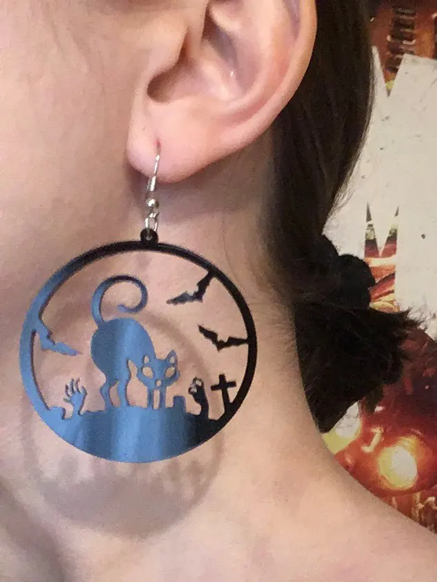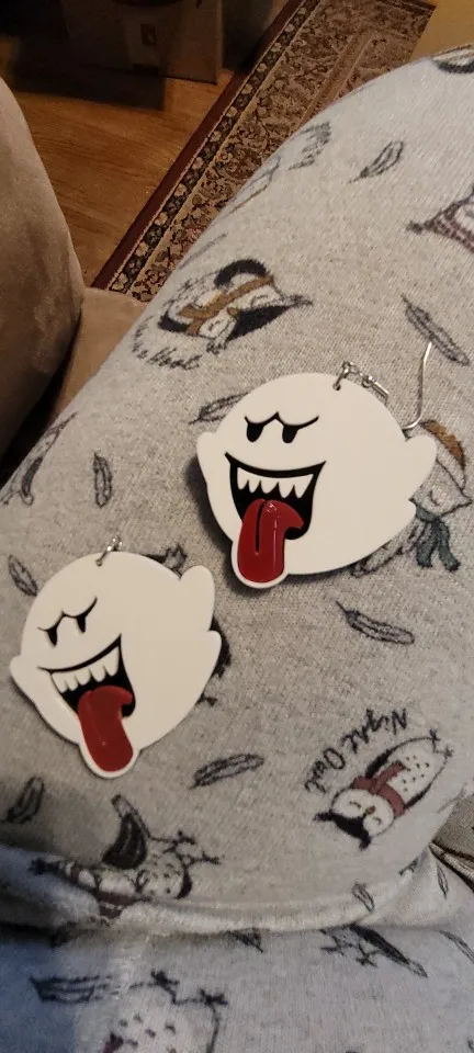 earrings were ok, detailed faces I liked that but one out of the two pair I ordered was broken. sad to say. I probably won't order again in case that would happen again. thin acrylic. didn't communicate with the seller. shipping normal timeframe.