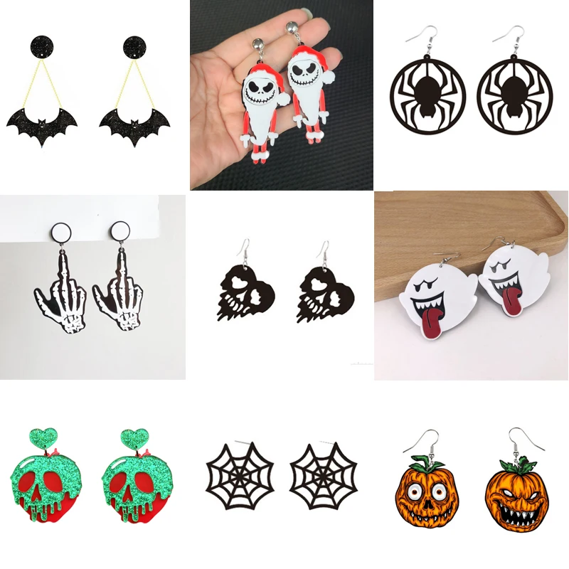 Donarsei Хэллоуин летучая мышь Тыква череп акриловые серьги женские Хэллоуин костюм косплей жуткий паук скелет висячие серьги вечерние