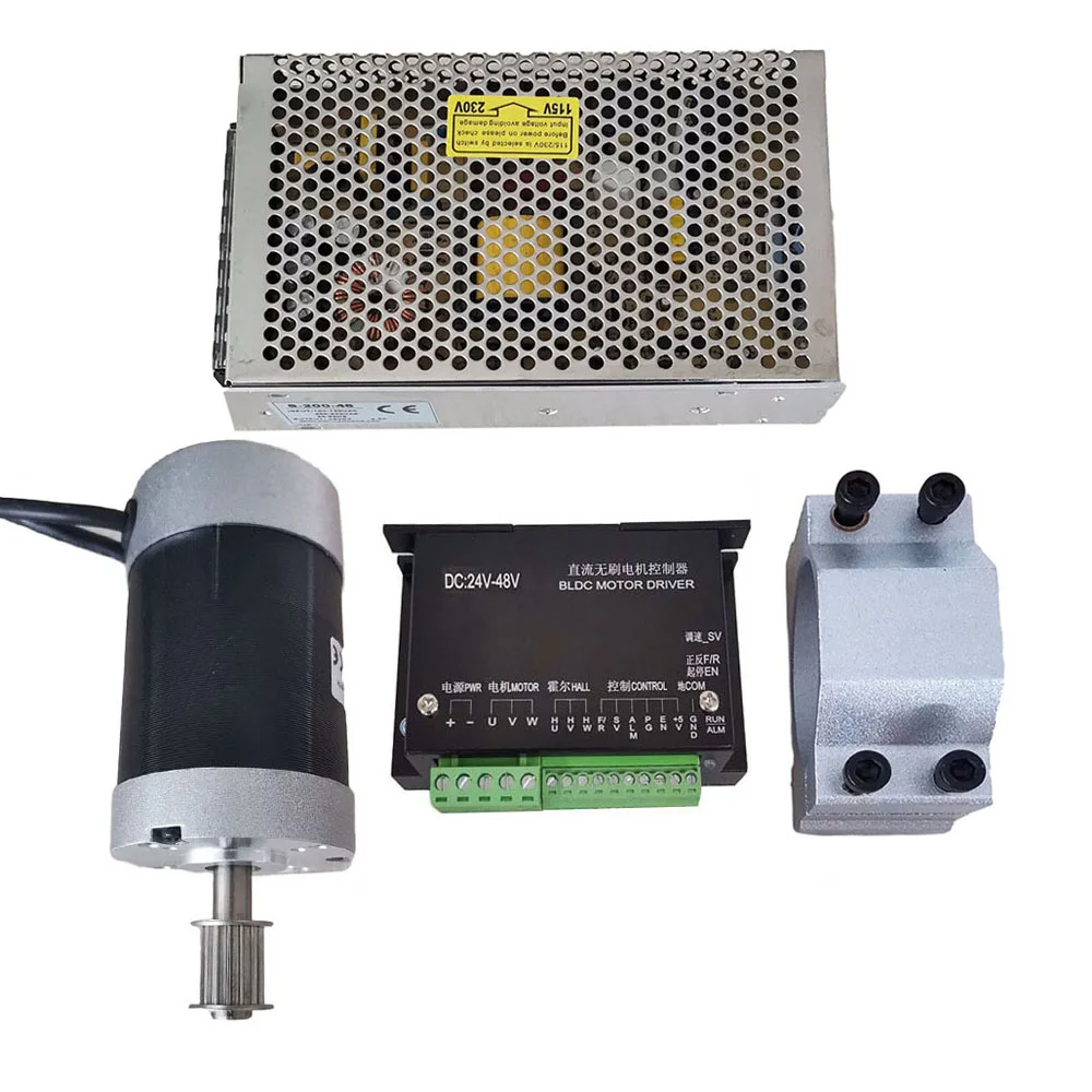 48 В 200 Вт синхронное колесо бесщеточный шпиндель + 57 мм зажим с винтами + 48 В бесщеточный мотор Драйвер + 48В постоянного тока 4.2A источник питания