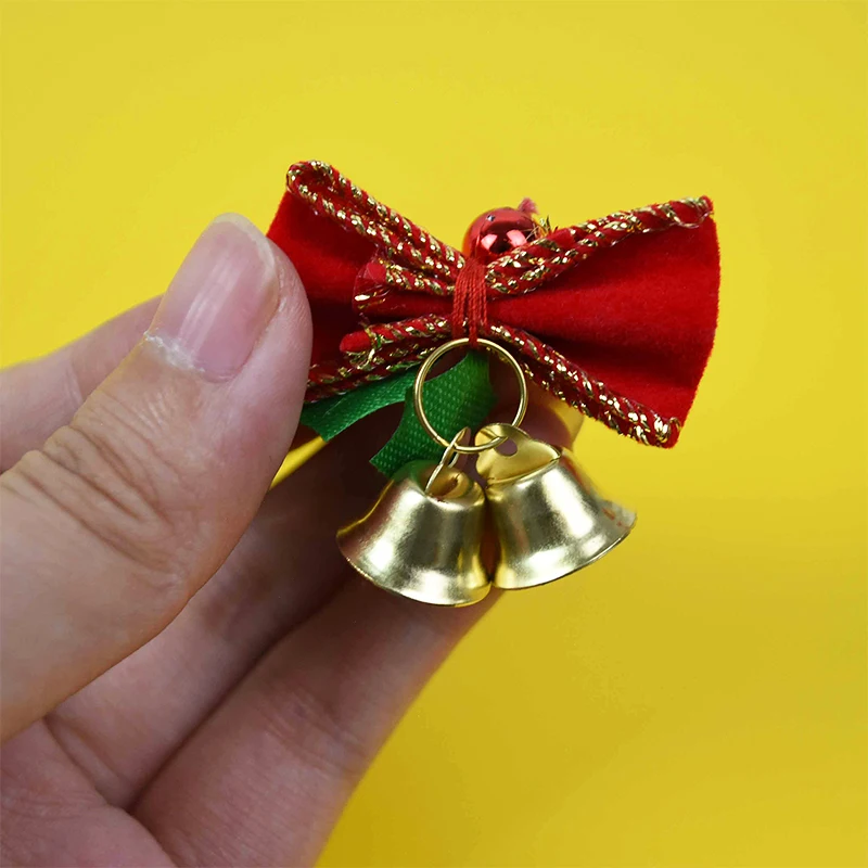 Украшения для рождественской елки, с колокольчиками, красные, зелен...
