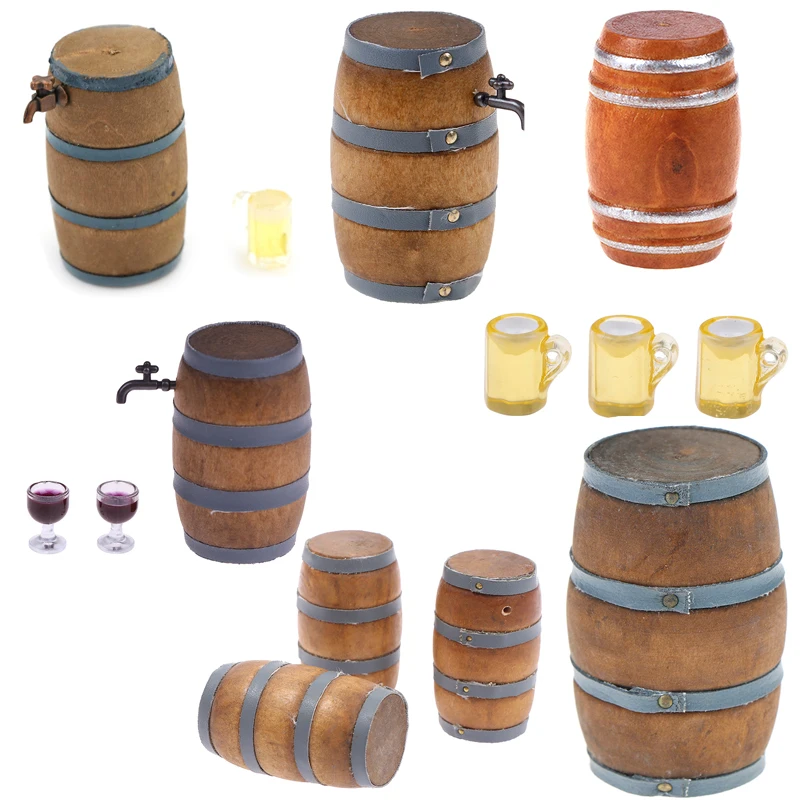 Мини Деревянный Красное Вино Баррель миниатюрный пивная бочка пиво бочковое пиво бочонок для Кукольный дом украшения аксессуары 1:12 весы кукольный домик