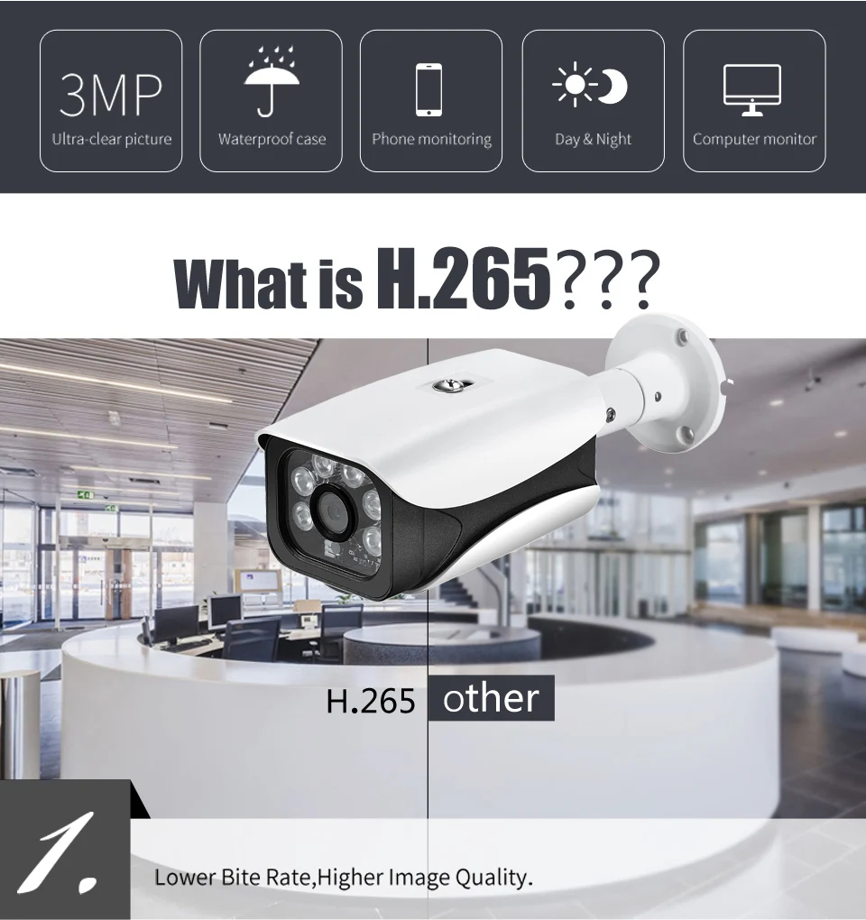 1) H.265 2MP 3MP 5MP опционально2) 3516EV300 процессор для 5MP /3516EV200 для 3MP / XM530AI для 2MP3) SC2235 датчик для 2MP ,SC4239 для 3MP ,SC335E для 5MP4) с IR-CUT фильтром, поддержка дневной/Ночной переключатель5) 12 В/48 В постоянного тока PoE опционально6) 6 шт. Массив ИК светодиодный, 5-30 м ИК расстояние для ночного видения7) многоэкранное программное обеспечение и CMS8) Обработка изображений: Автоматическая экспозиция (AE), автоматический баланс белого (AWB), автоматический контроль усиления (AGC)9) Поддержка обнаружения движения, ONVIF10) Поддержка посещения смартфона