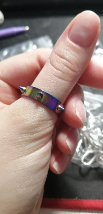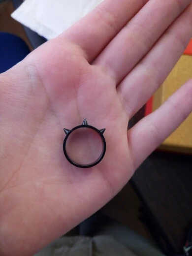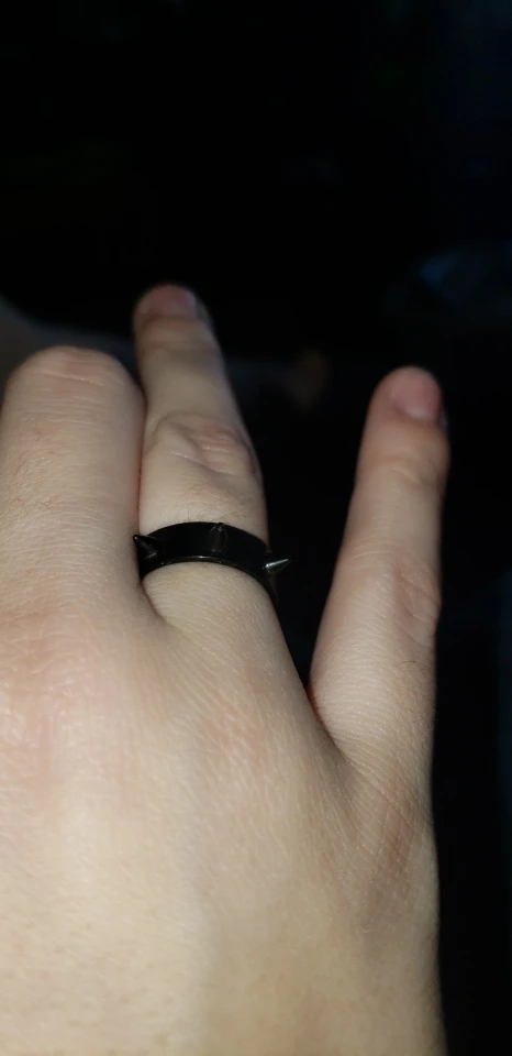 Классные кольца в панк-стиле. Заказывала во время распродажи 2 кольца разного цвета - пришли оба. Размер по факту оказался 5, а не 6 - но мне он подходит даже больше. На руке держатся хорошо. Продавец общительный и доброжелательный, большое ему спасибо! ^,..,^