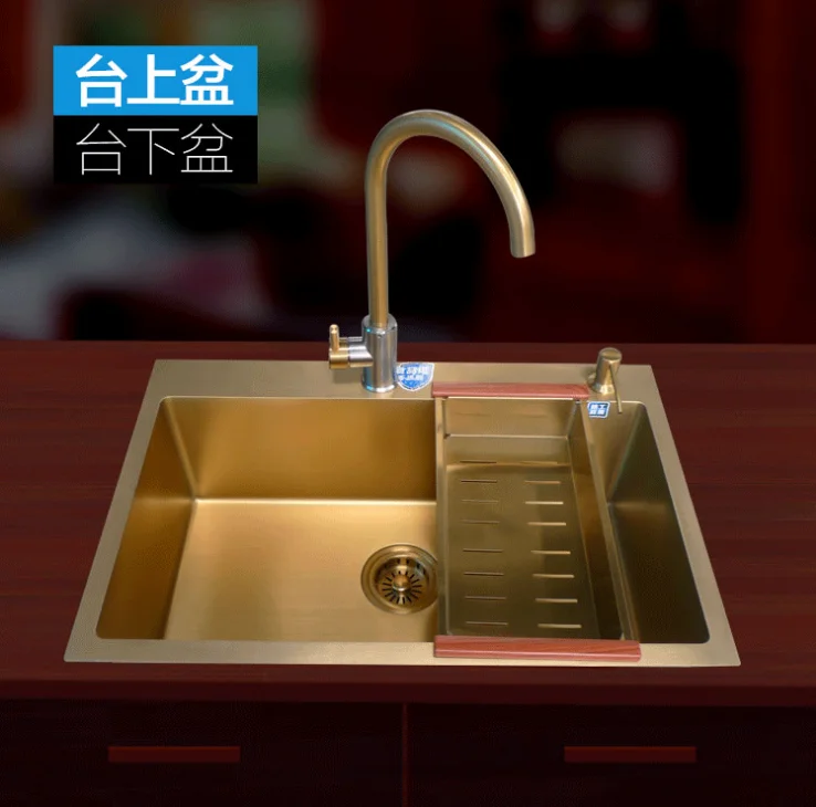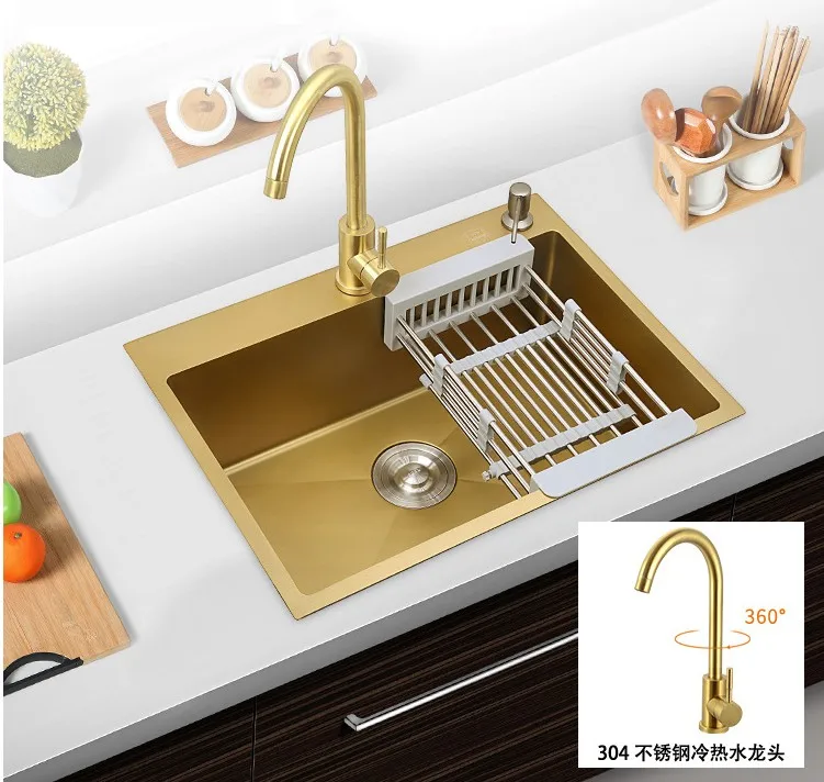 304 нержавеющая сталь матовое золото раковина для овощей одна чаша ...