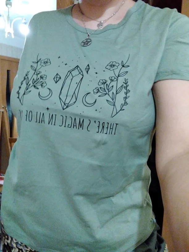 Женская Винтажная футболка с изображением волшебства во всех нас, с изображением хрустальной Луны и ведьмы, с коротким рукавом