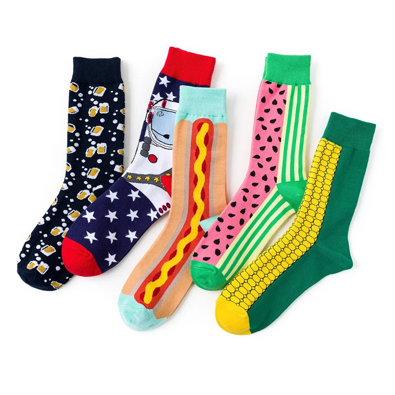 Забавные Женские носочки мужские графические носки из чесаного хлопка, омлет, лягушка, сумасшедший бургер, лосось, кукуруза, авокадо, птица, рыба, носки, рождественский подарок