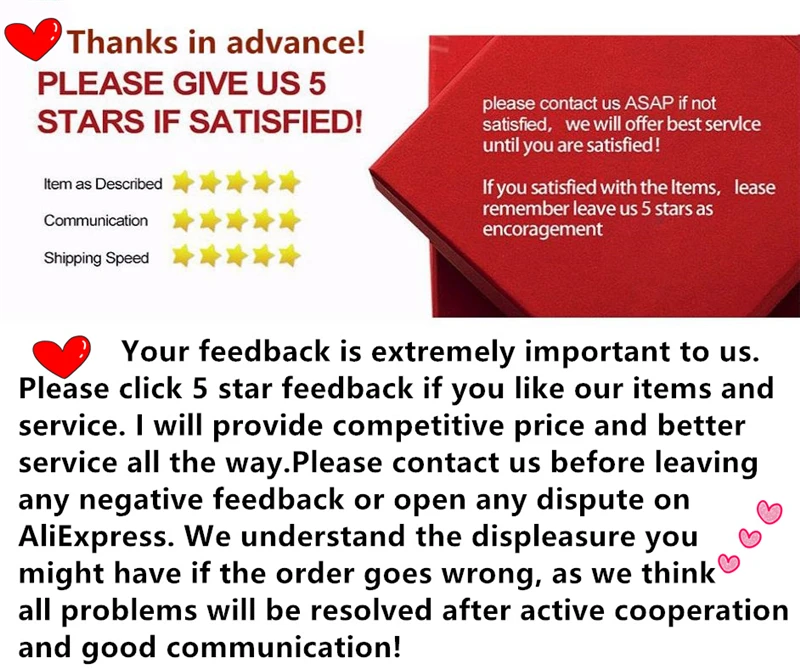 1. Как светильник съемки, угол и цвет дисплеев, физический и фотографии, возможно, некоторые различия! Вид отнестись к этому. 2. В связи с тем, что измерения выполнены вручную. Пожалуйста, имейте в виду, что 0,5-1 см. (1 дюйм = 2,54 см) 3. Если у вас есть какие-либо проблемы при получении посылка, пожалуйста, сначала свяжитесь с нами для решения и не открывайте спор напрямую. Мы обещаем дать вам удовлетворенный ответ. Большое спасибо за ваше время! ❤Большое спасибо за ваше время! Спасибо за понимание, лучший день!